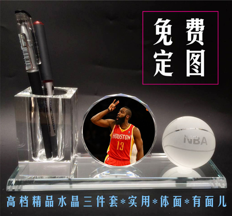 淘宝Bigbig bangVIP,詹姆斯哈登模型手办摆件送男生公仔,【高档水晶三件套】【免费定图】【刻字+10元】