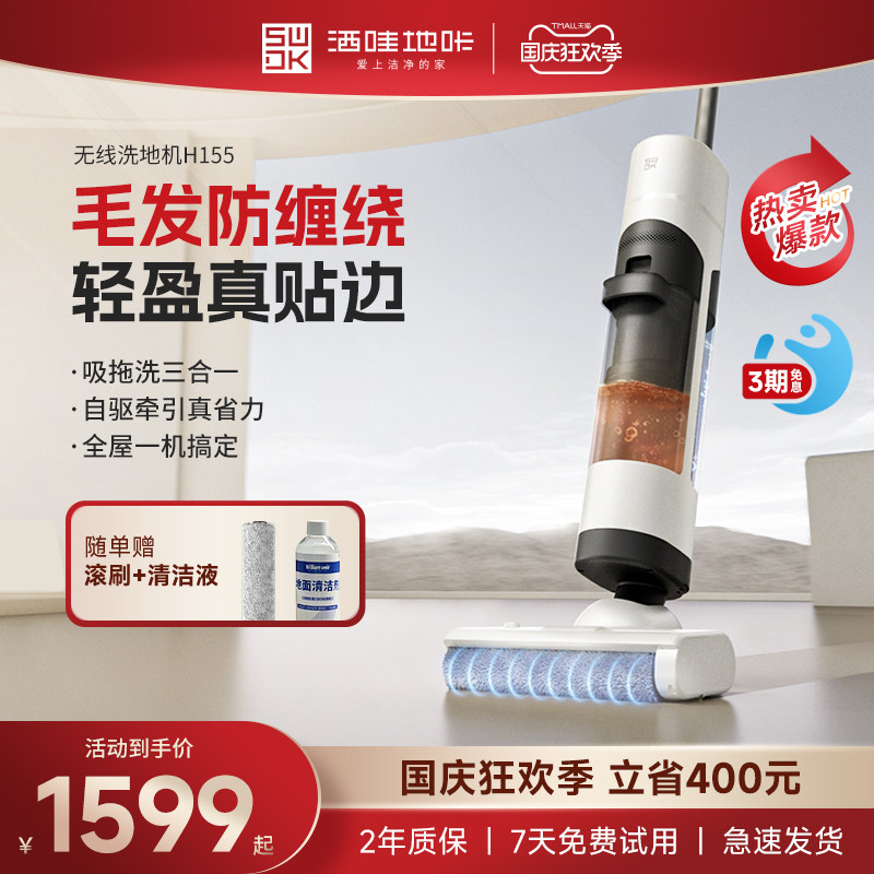 天猫洒哇地咔旗舰店,【新品升级2.0】洒哇地咔洗地机家用扫地拖地一体三合一贴边H155