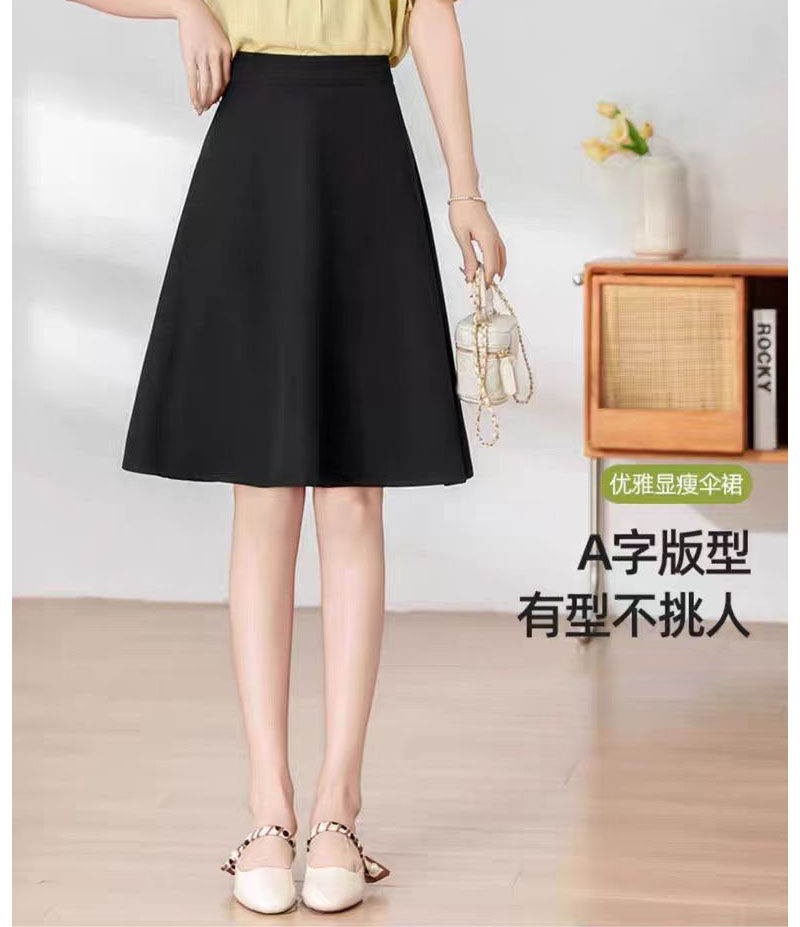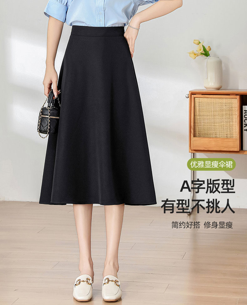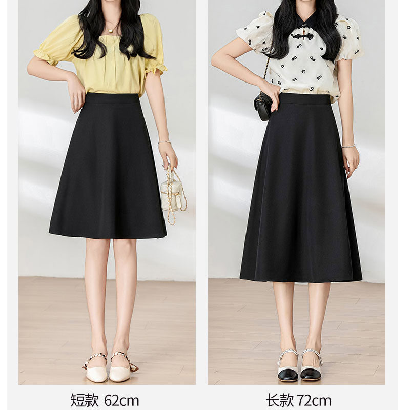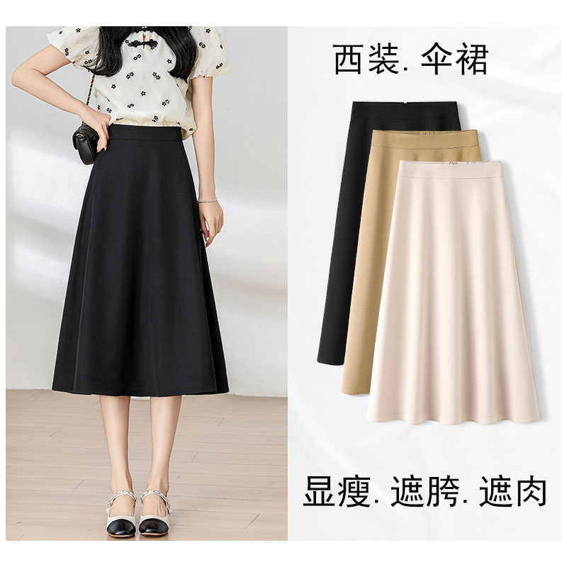 黑色西装a字半身裙女夏季薄款高腰显瘦遮肉垂感伞裙中长款大摆裙