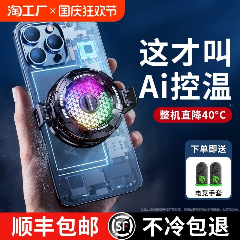 天猫天天特卖工厂店,ai27w结冰磁吸手机散热器降温神器适用小米黑鲨苹果半导体冰封制冷散热背夹平板ipad直播专用静音充电噪音,潮流精品,品质保证