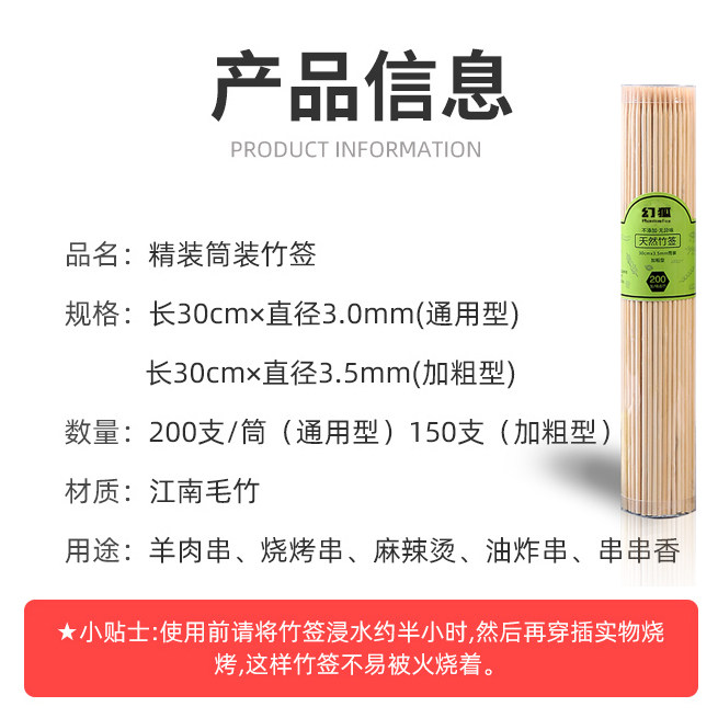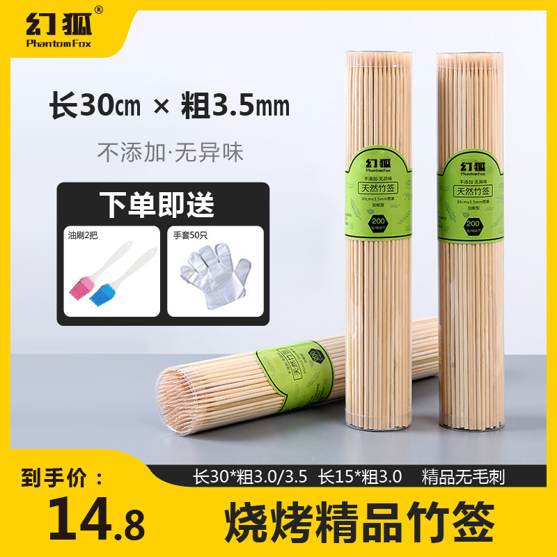 天猫幻狐户外旗舰店,家用烧烤签子一次性钵钵鸡竹签,烧烤签子加粗光滑不扎手下单即送油刷手套