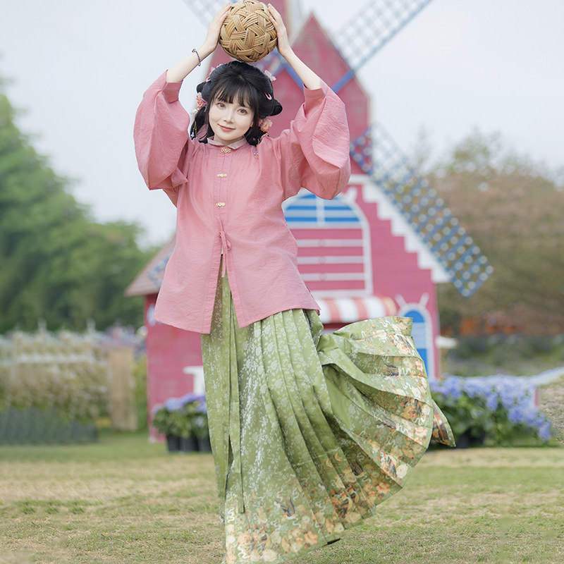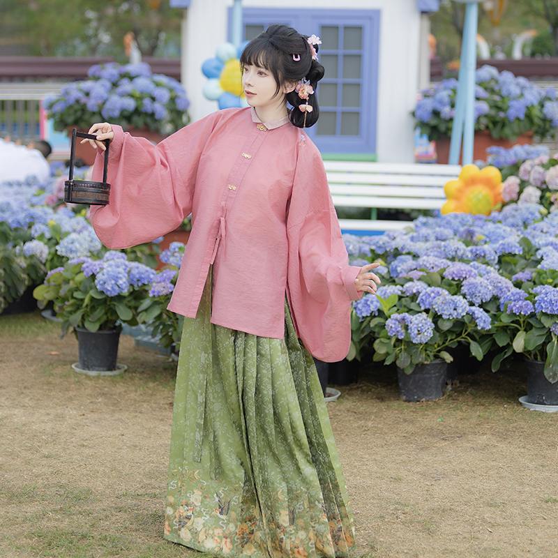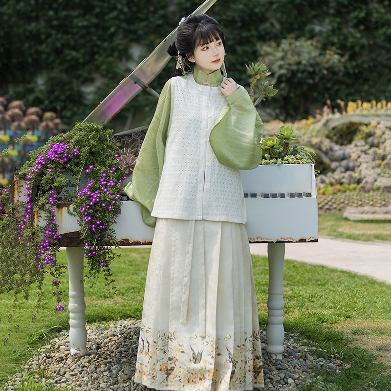 淘宝卿如故汉服工厂店,卿如故原创白菜汉服明制对襟琵琶袖短衫圆领短比甲仿烧箔工艺马面