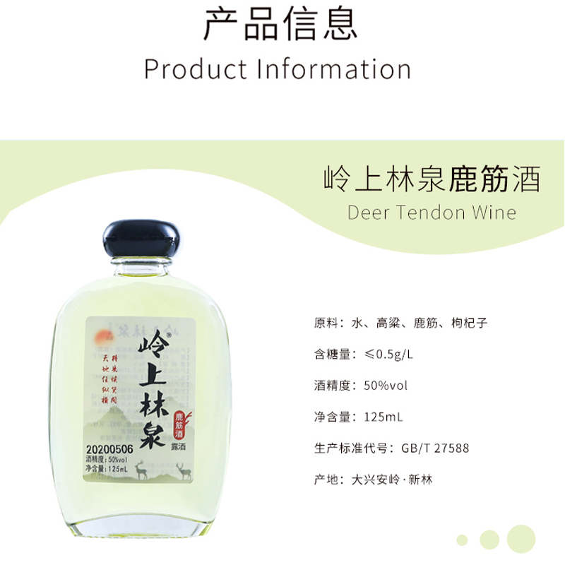 天猫兴安食品专营店,岭上林泉鹿筋酒50高度滋补养生浸泡高粱枸杞药材东北特产4瓶125ml