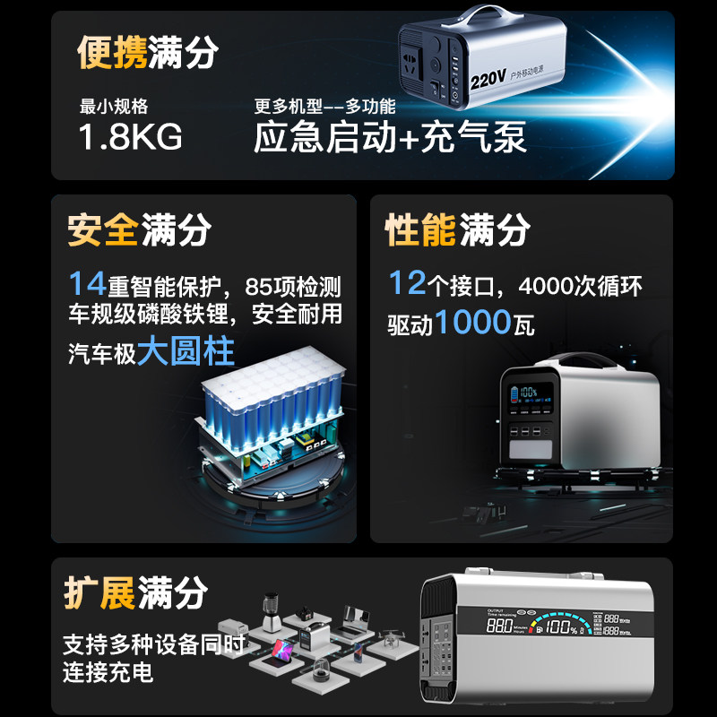 天猫未梵旗舰店,移动户外电源220V便携大容量充气泵一体机应急启动电源自驾游露营摆摊电源笔记本充电源,大容量220V户外电源