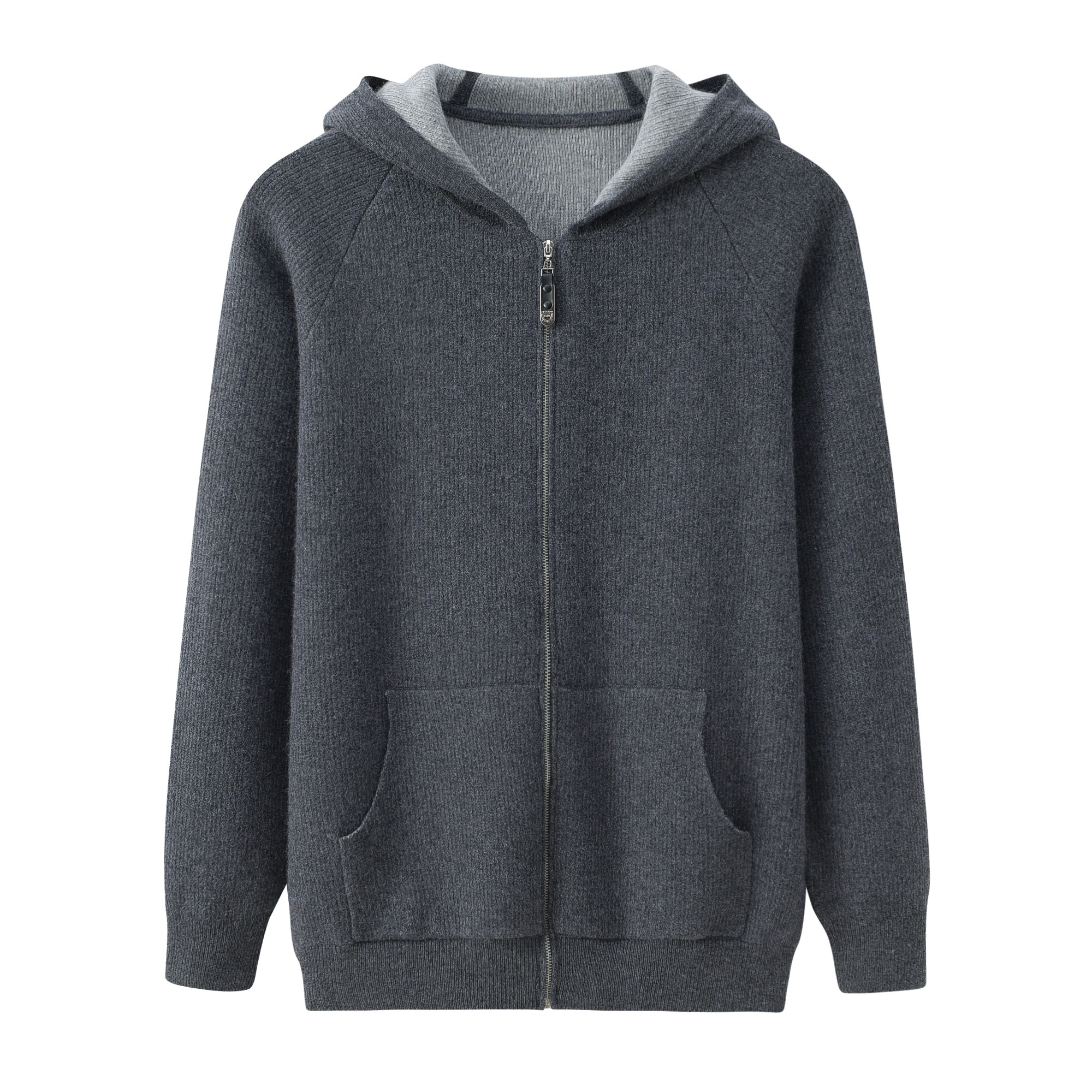 淘宝内蒙古羊绒衫工厂店,内蒙古100%纯羊绒衫男士休闲连帽卫衣开衫双层加厚拉链保暖毛衣