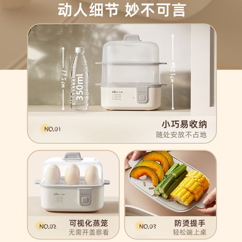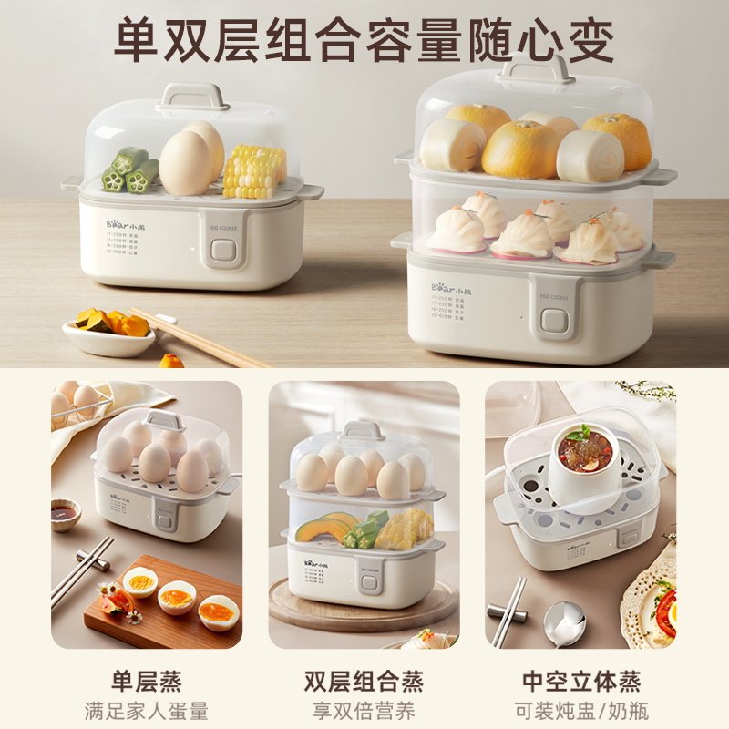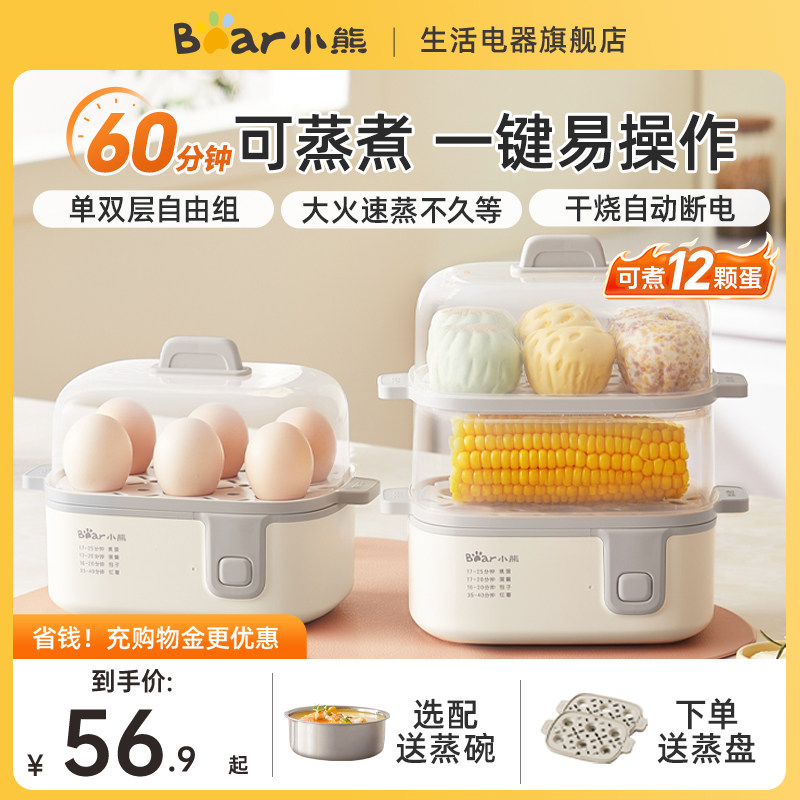 天猫小熊生活电器旗舰店,小熊双层煮蛋器家用小型蒸锅,一键易操作,长辈也会用,蒸煮热多功能
