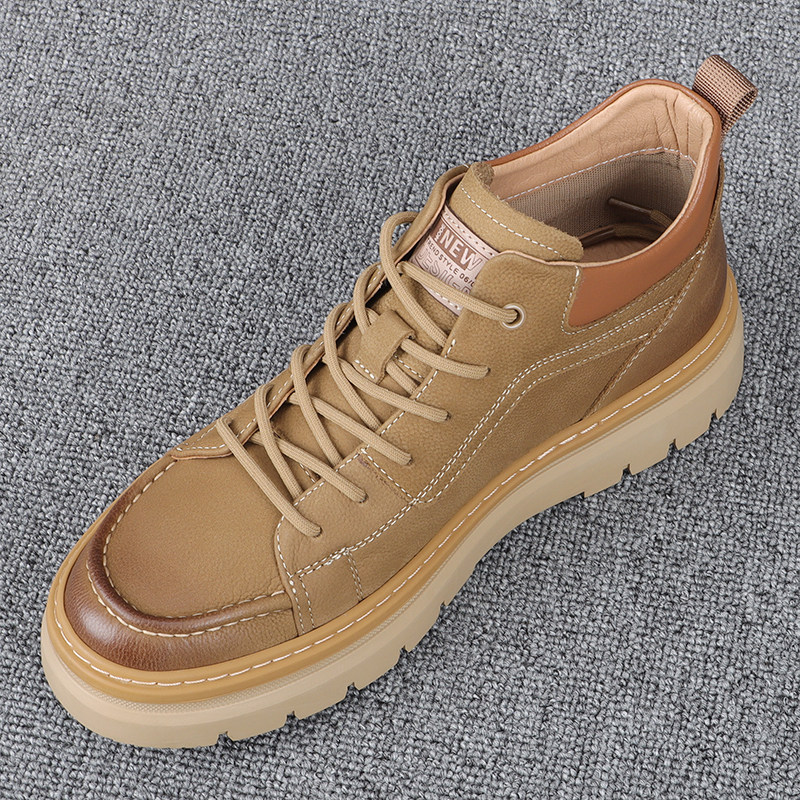 淘宝艺牧男鞋,厚底马丁靴男2023秋冬新款防滑底男士靴子日常休闲系带牛仔工装靴