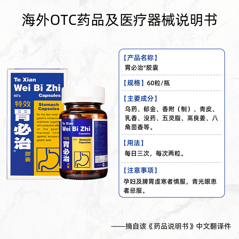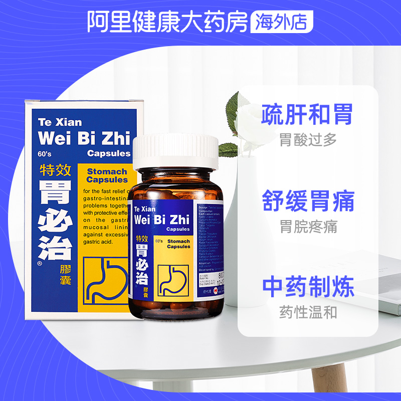 天猫阿里健康大药房海外店,中国香港进口胃必治60粒胃痛胶囊,疏肝和胃 行气止痛