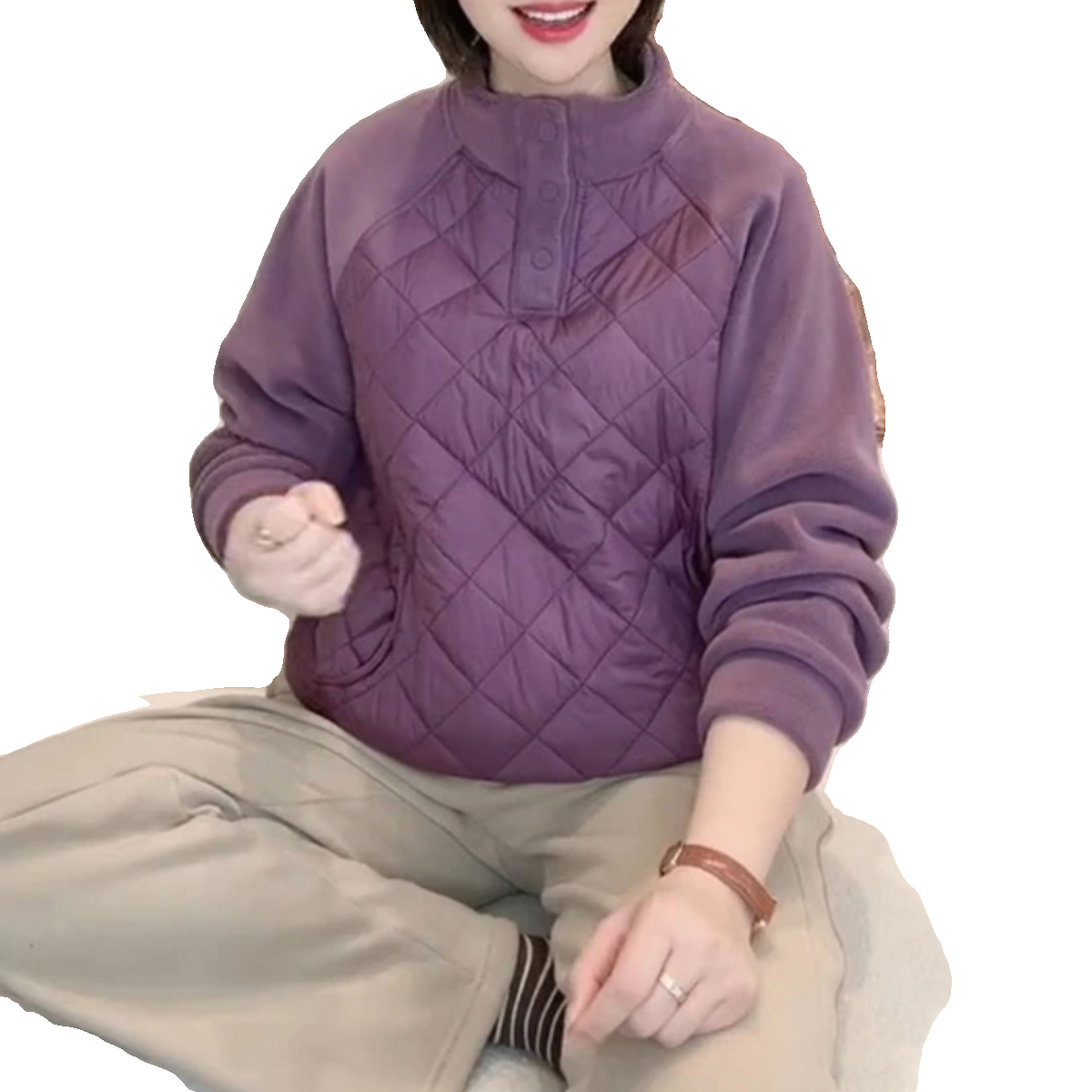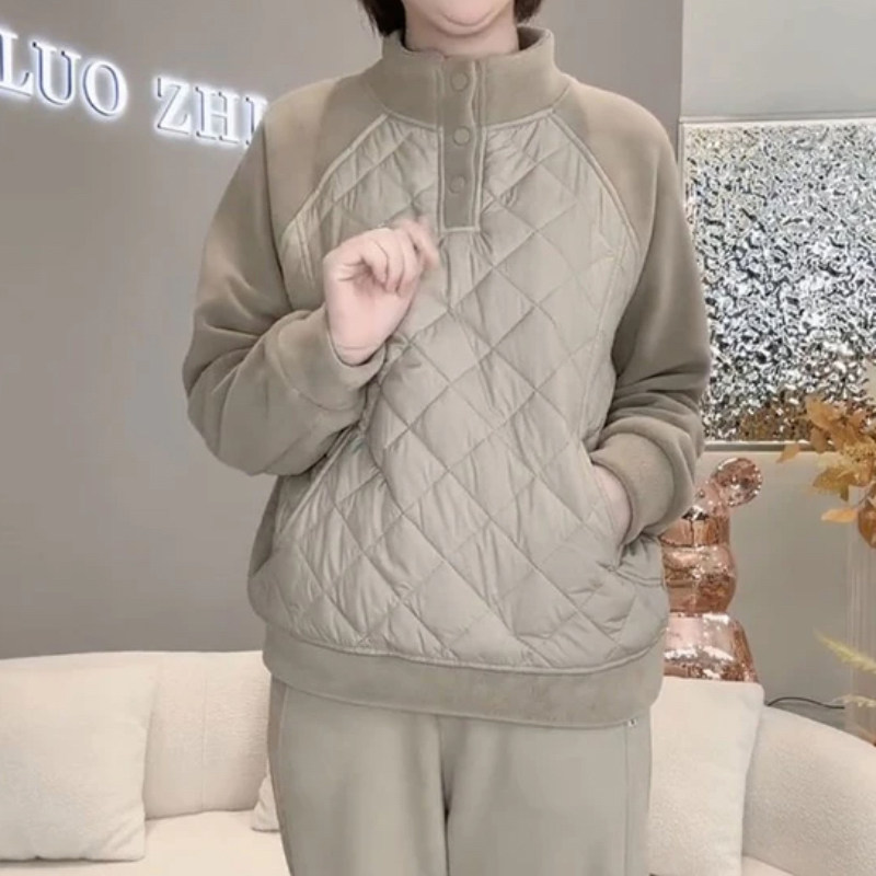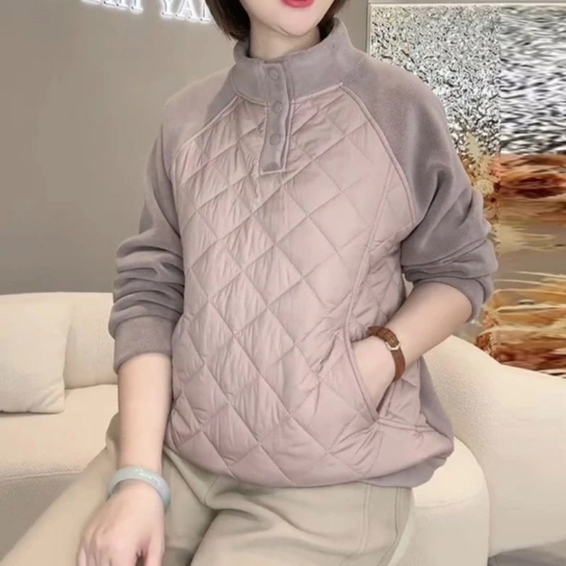 淘宝十字铺8,妈妈装拼接休闲加绒立领宽松卫衣
