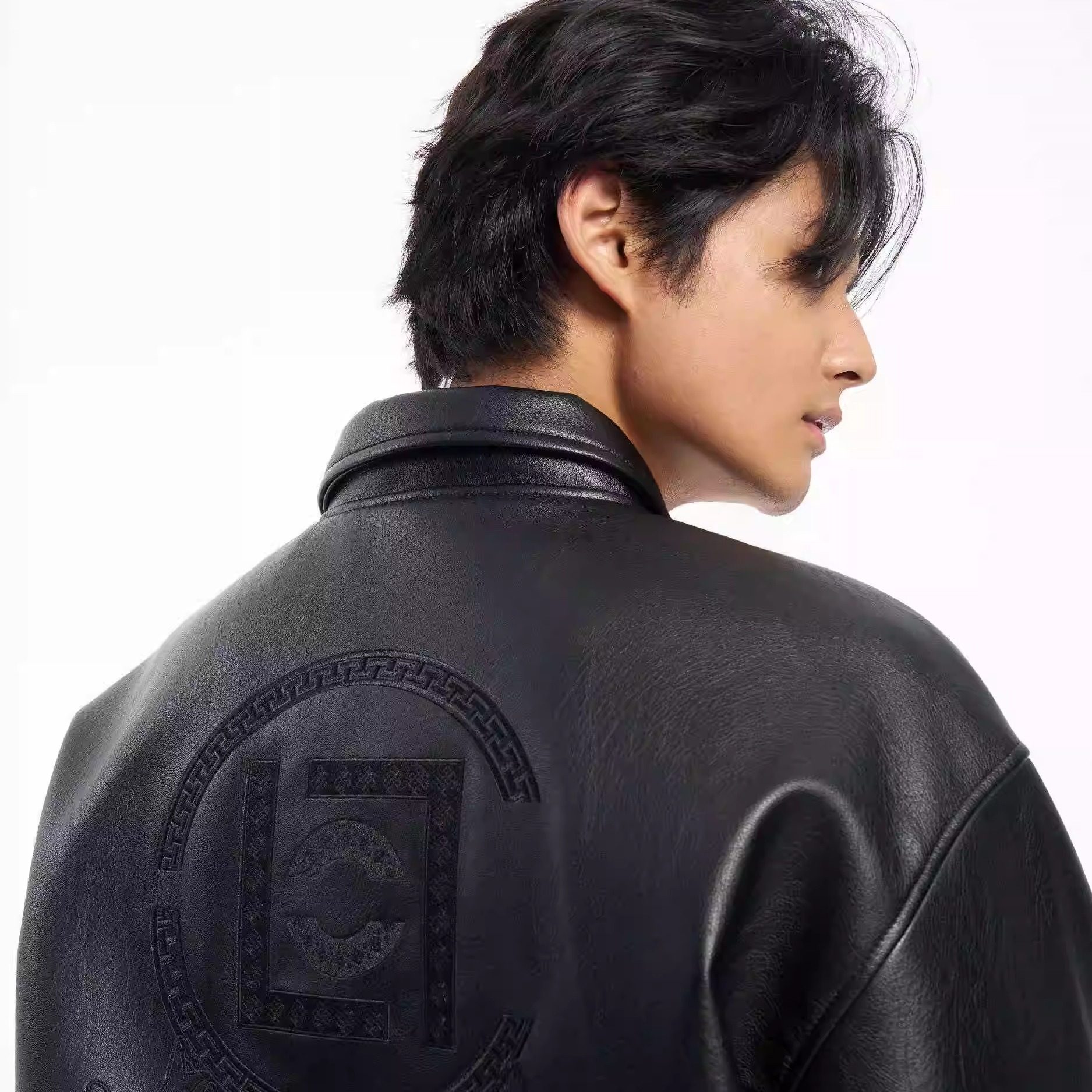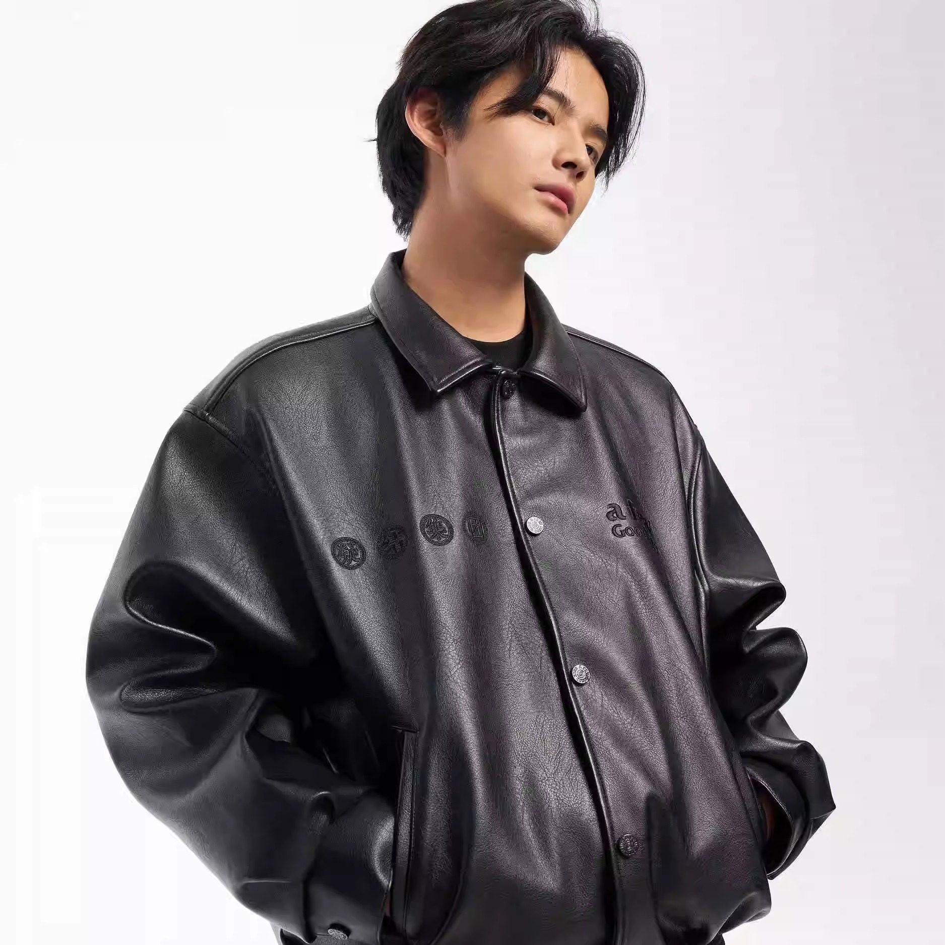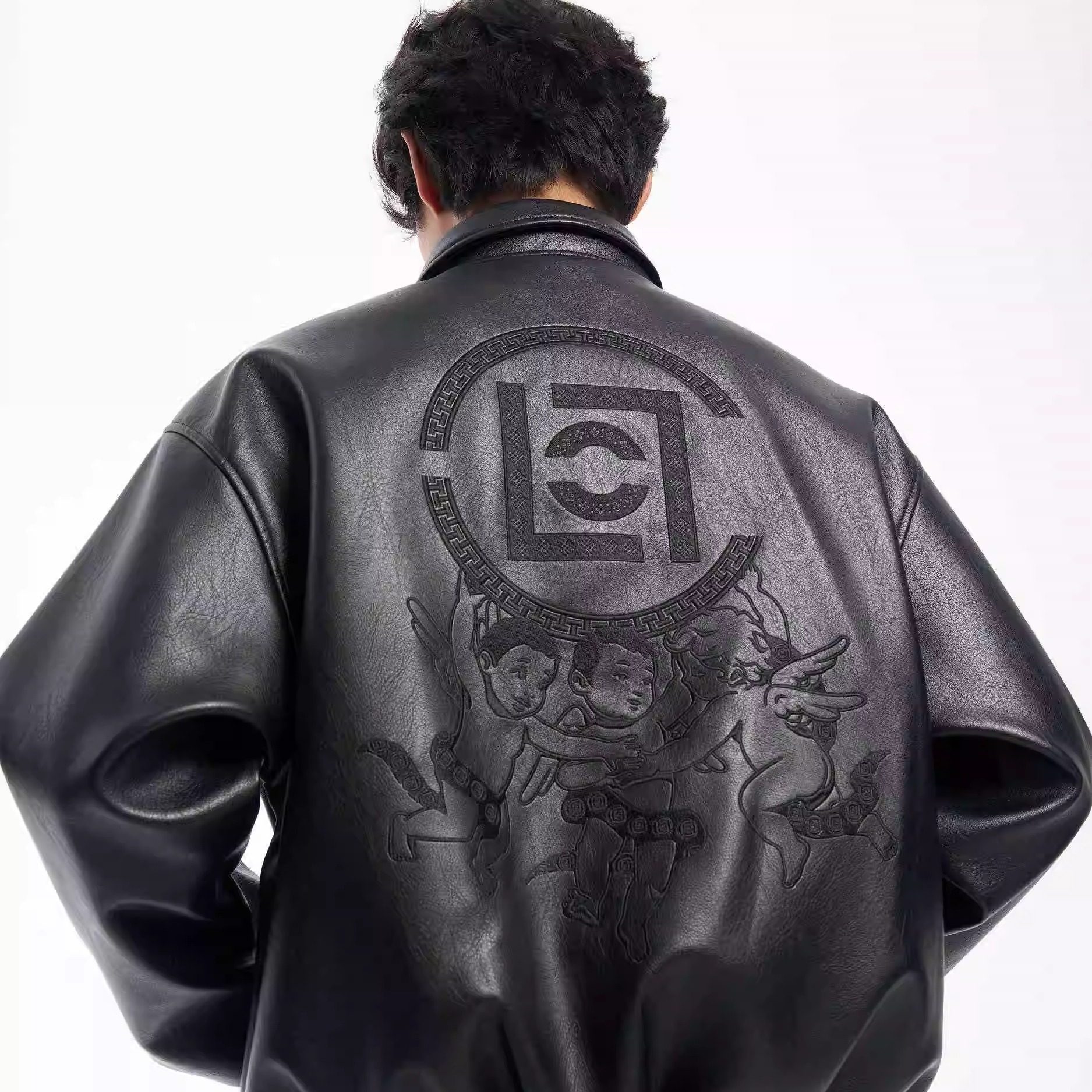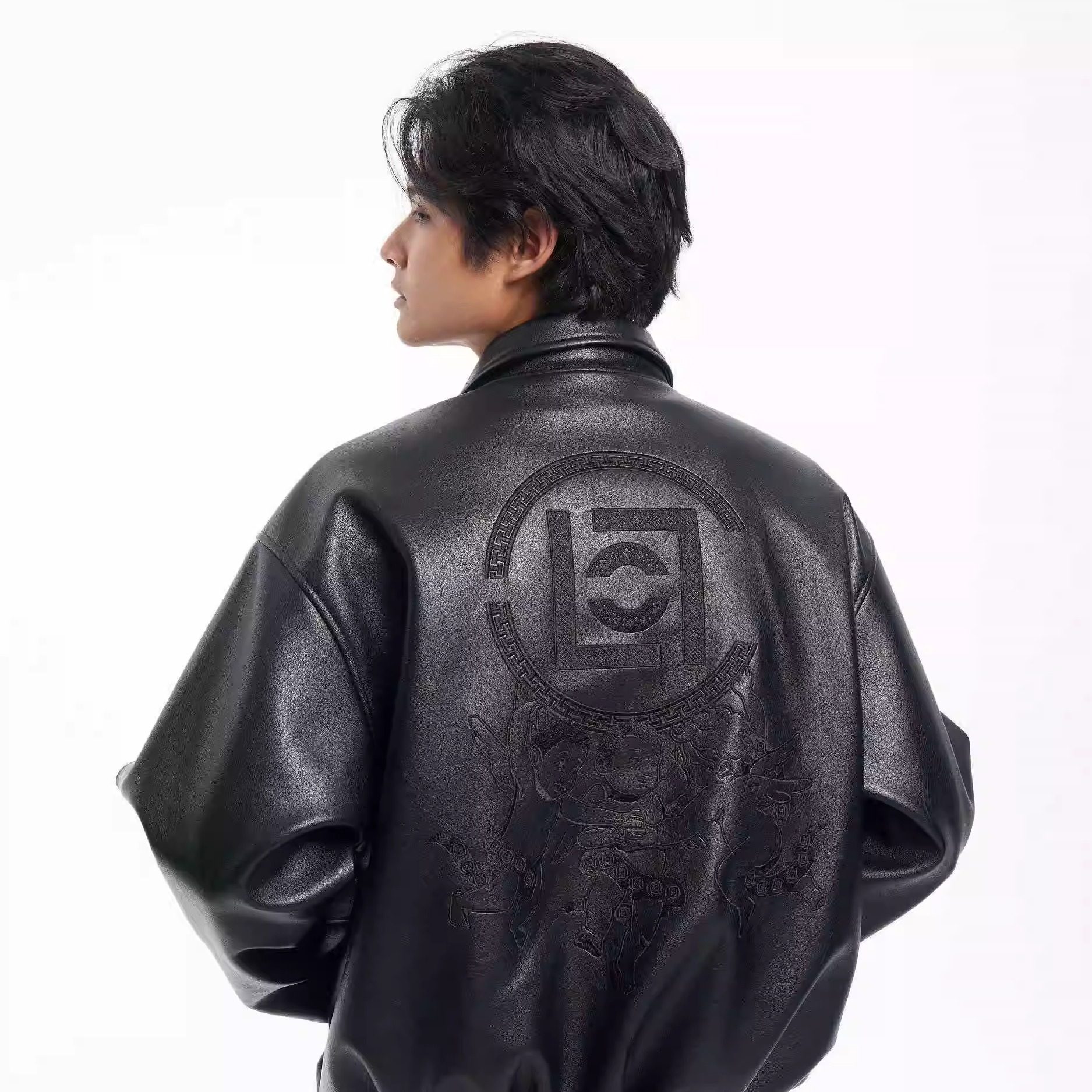 淘宝三七Wardrobe,国潮黑魂刺绣翻领皮衣外套男