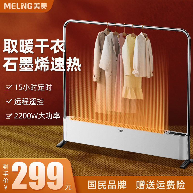 天猫美菱亿彩专卖店,【烘衣取暖】美菱石墨烯踢脚线,赠送烘衣架 干衣取暖两不误 石墨烯取暖