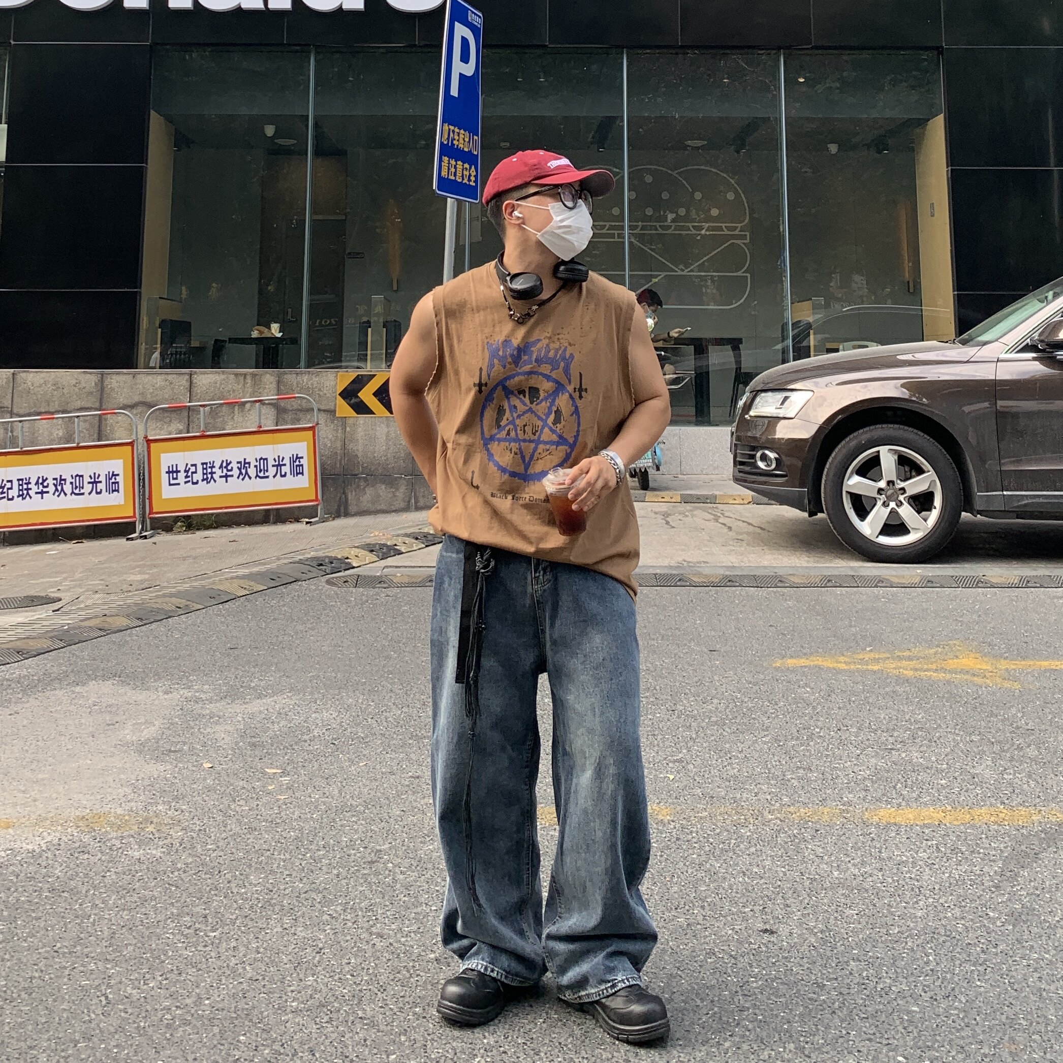 Daily 1|堆积感拖地牛仔裤日系复古直筒裤垂感水洗做旧阔腿裤男女