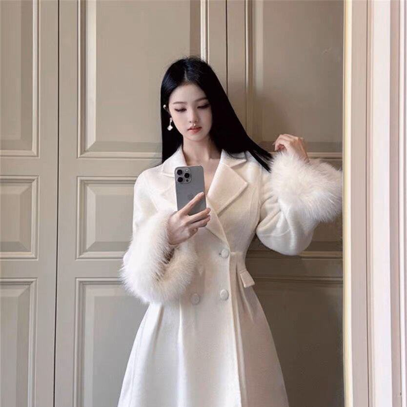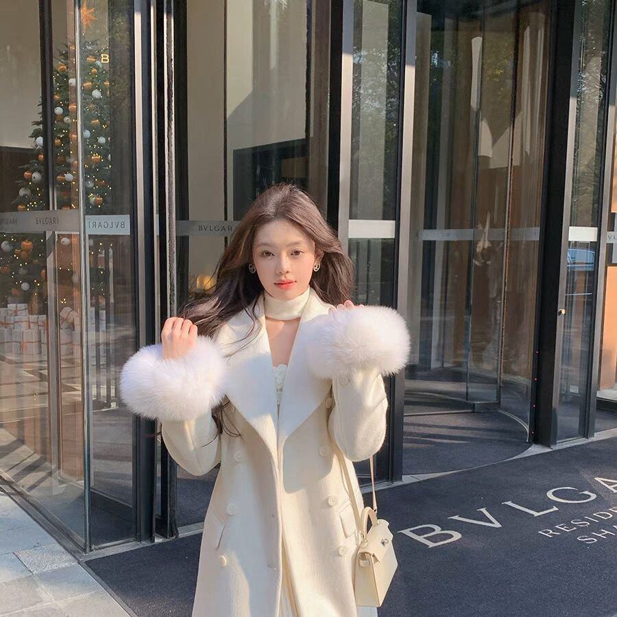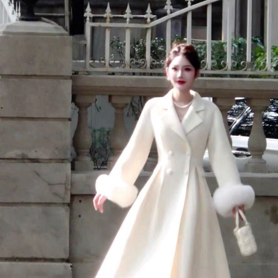 淘宝佳琳潮流百搭,加厚530克高级感白色毛呢外套女冬季中长款宽松名媛呢子大衣