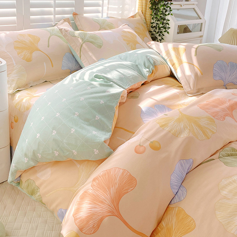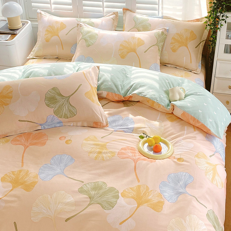 北欧银杏四件套纯棉100全棉床单床笠被罩被套学生宿舍床上三4件套