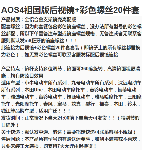 淘宝易比卖配件,aos4日本后视镜祖国版改装烧钛螺丝
