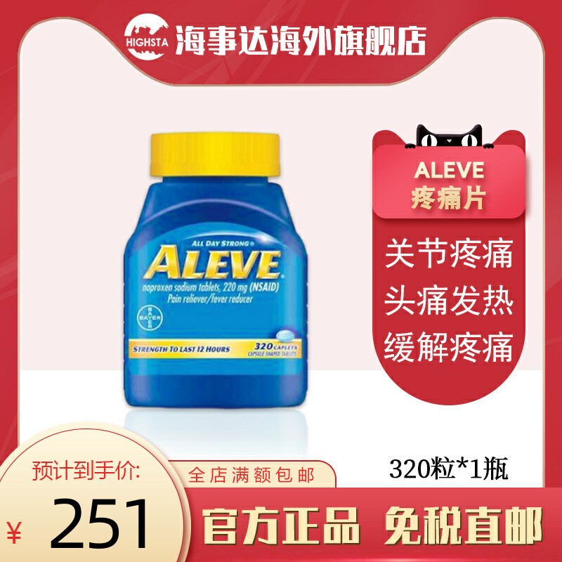 天猫海事达海外旗舰店,美国直邮 BAYER拜耳 Aleve止痛片缓解头疼关节痛220mg*320粒,需上传身份证,否则不发货,发出不支持退款