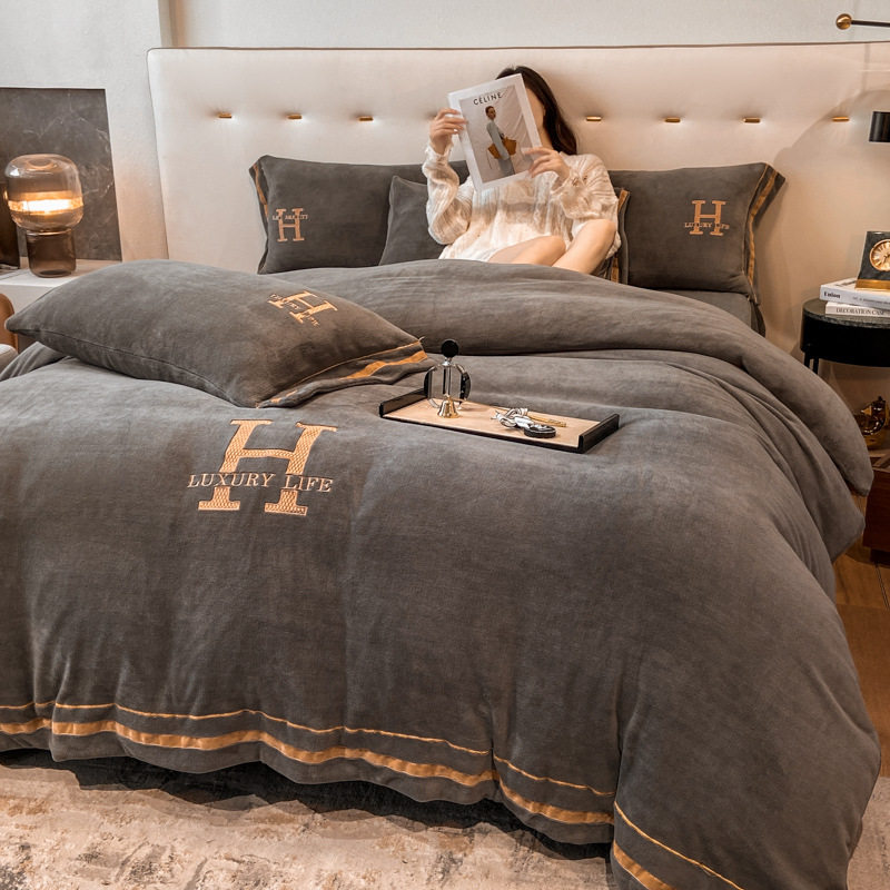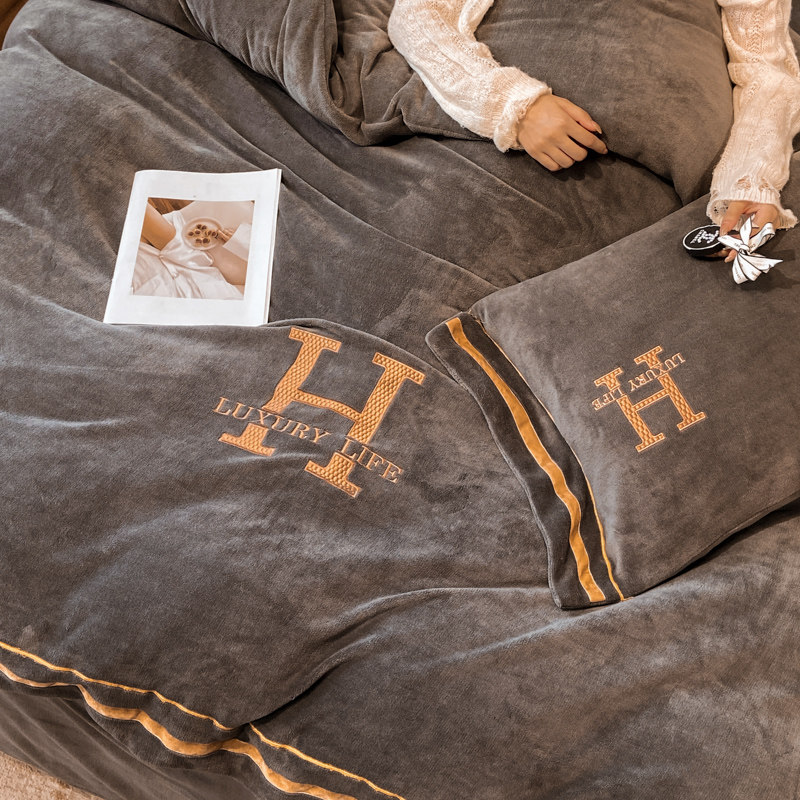 天猫纺色旗舰店,北欧加厚牛奶绒三四件套双面绒被套