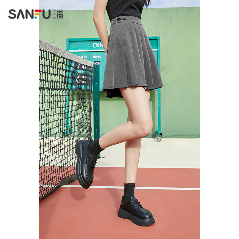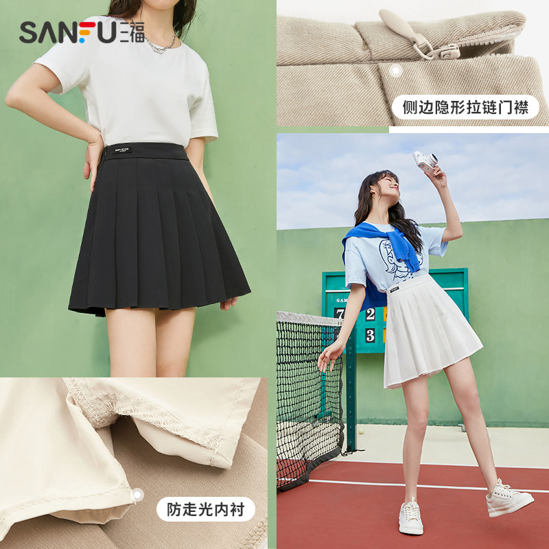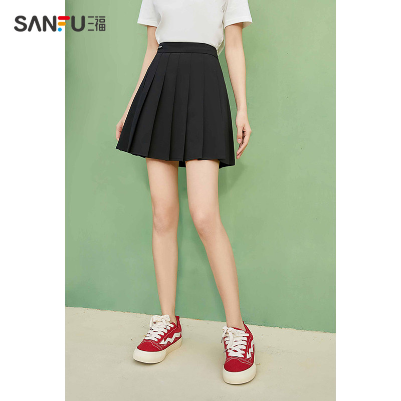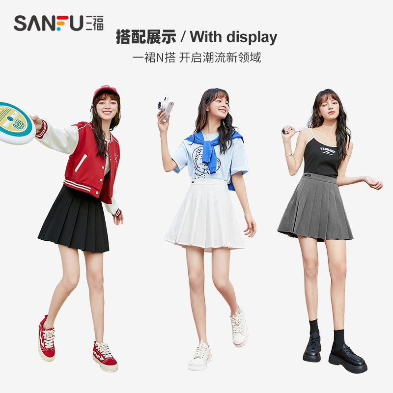天猫三福服饰官方旗舰店,三福2023春季新款学院风jk夏百褶裙,jk小个子高腰显瘦a字半身裙 学院气质百搭