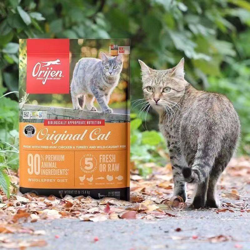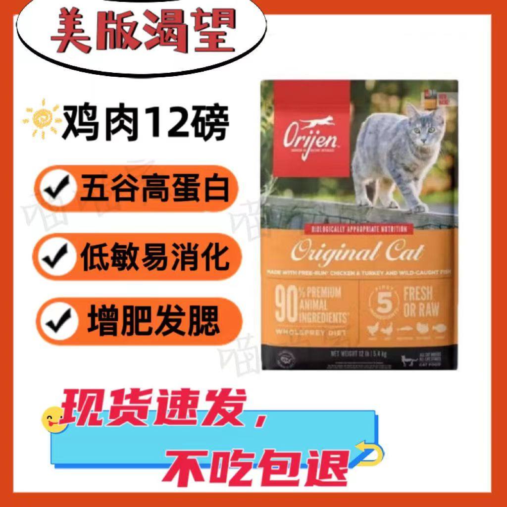 淘宝宠猫猫猫粮进口,Orijen渴望猫粮美国进口粮无谷灰猫全阶段5.4kg猫主粮冠军防伪标