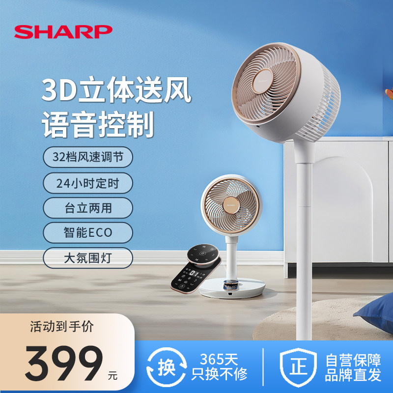天猫夏普冷暖电器旗舰店,夏普直流变频语音控制循环风扇,智能语音控制24小时定时氛围灯