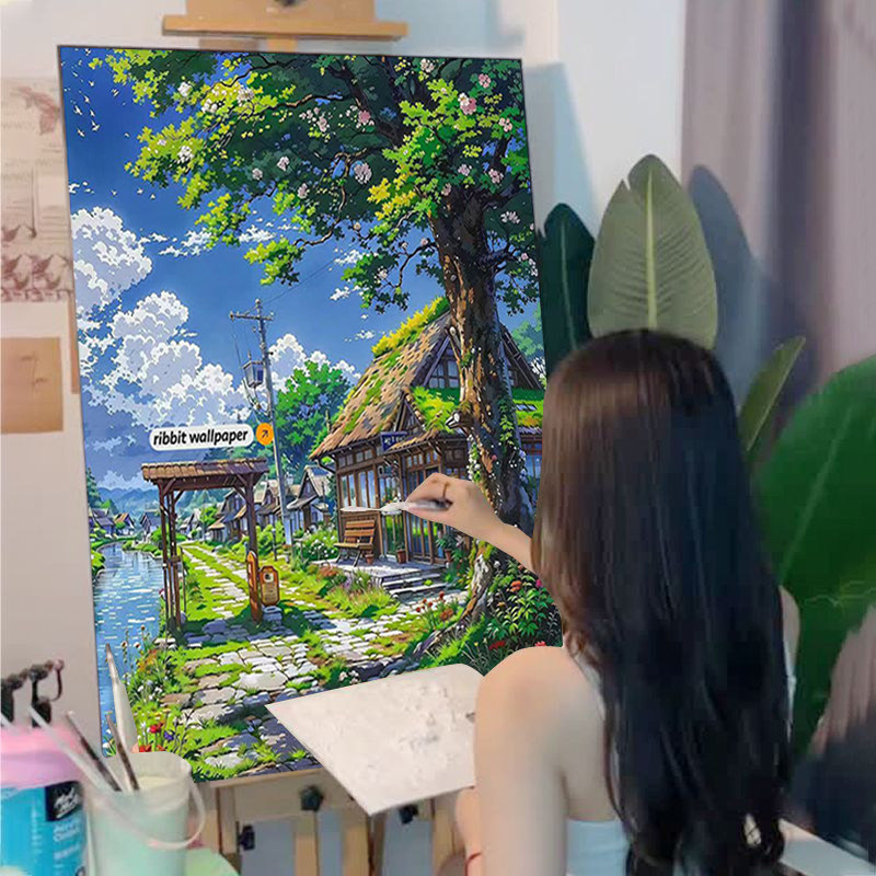 淘宝用尽晴天,宫崎骏夏天数字油画填色手工diy手绘丙烯儿童卡通动漫填充油彩画