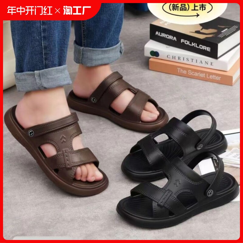 天猫天天特卖工厂店,皮凉鞋男款夏季外穿防滑防臭软底爸爸拖鞋男士户外开车两用沙滩鞋,潮流精品,品质保证