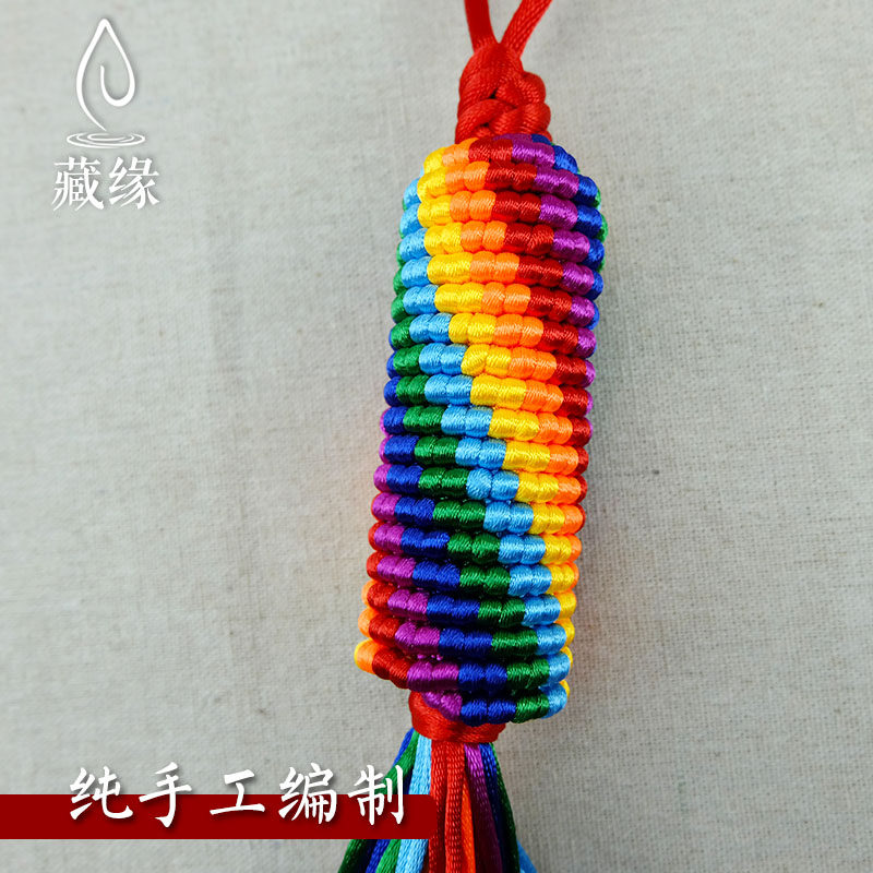 淘宝d[u2689819766],藏式九乘金刚结纯手工编织五彩车挂