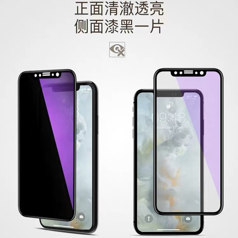 绿光防窥苹果13钢化膜适用iPhonex紫光XR防偷窥11pro max手机膜12全屏护眼15保护贴膜14pro防指纹15promax