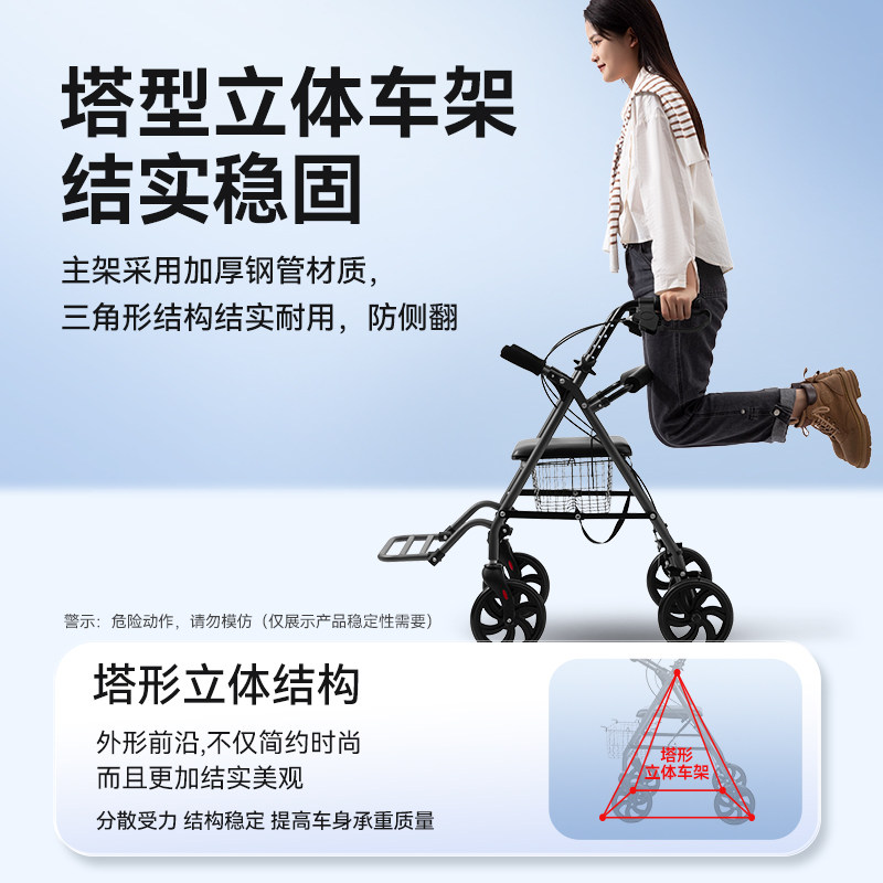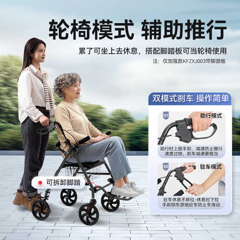可孚助行器老年人轮椅走路助步器老人手推车可坐行走助力防摔神器