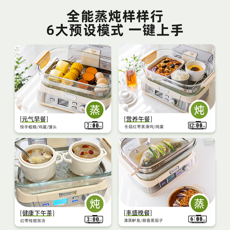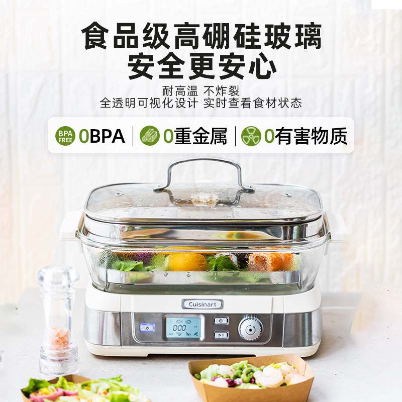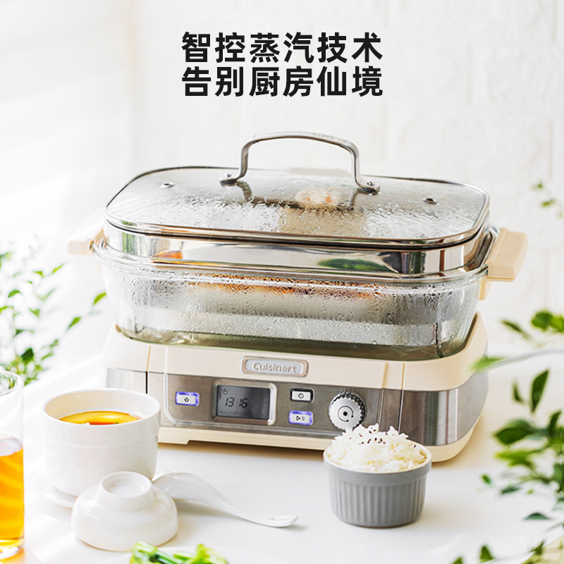 天猫美膳雅电器旗舰店,Cuisinart/美膳雅电蒸锅多功能家用智能玻璃蒸汽锅5L大容量蒸菜,30秒速出蒸汽 5L容量 玻璃锅体 智能防干烧