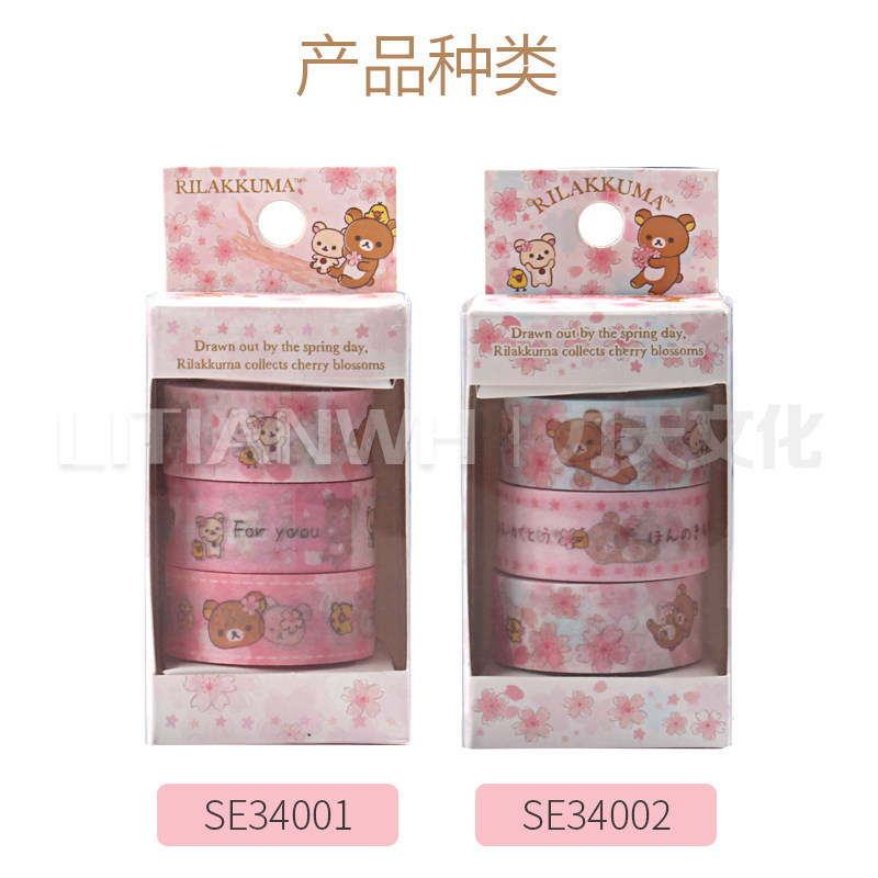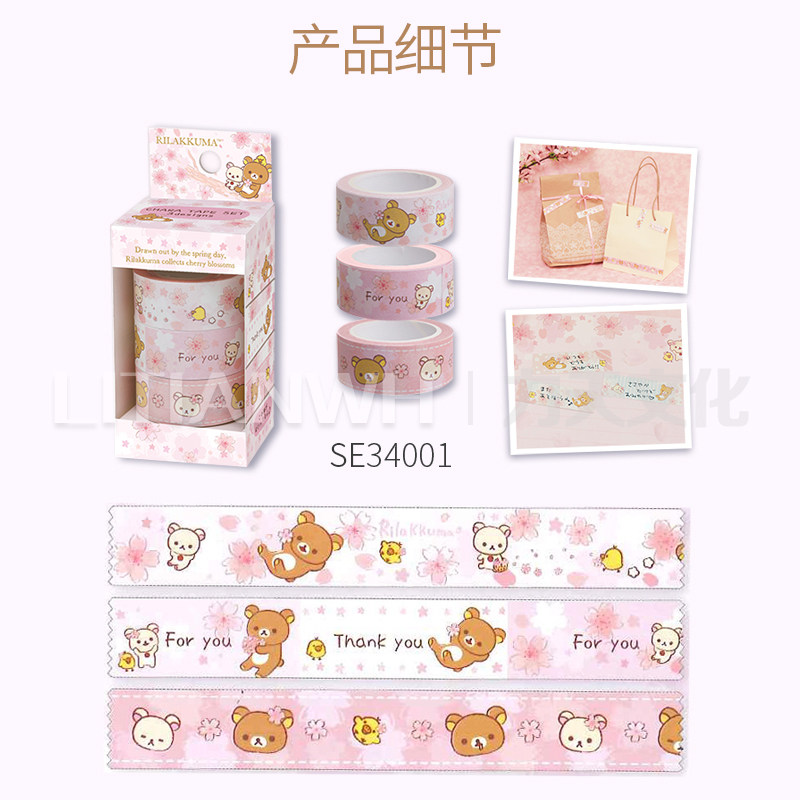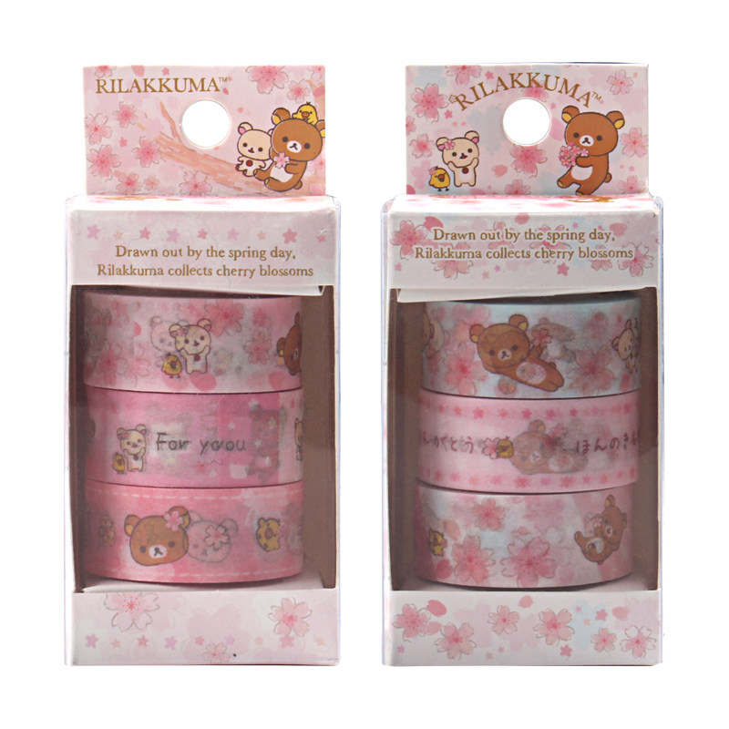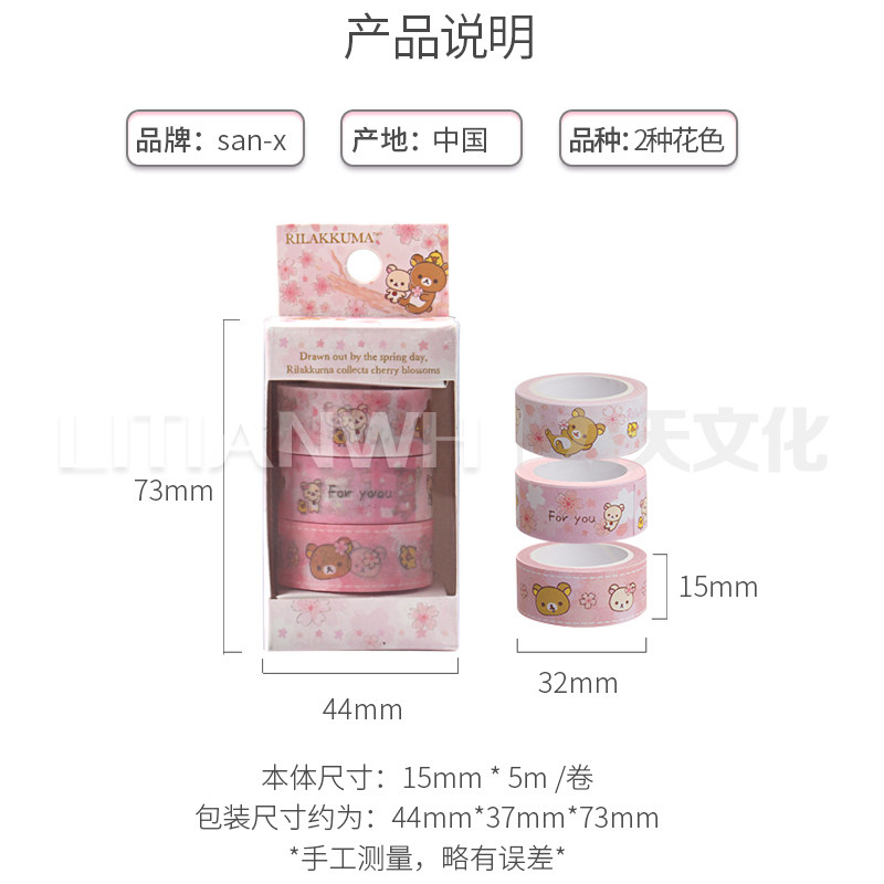 日本san-x轻松熊 粉色樱花和纸胶带 组合装 手账用和纸胶带 3个装
