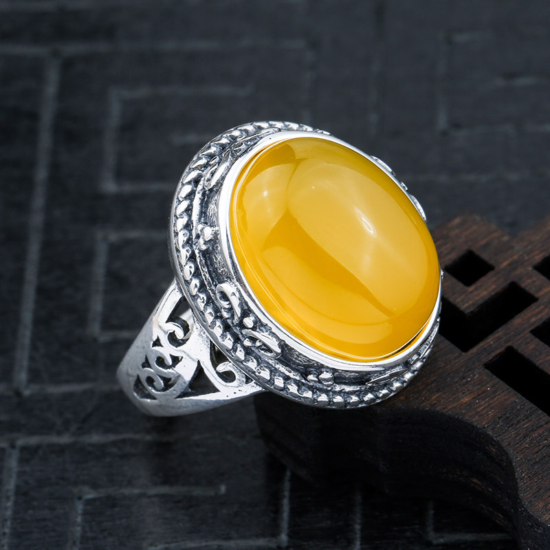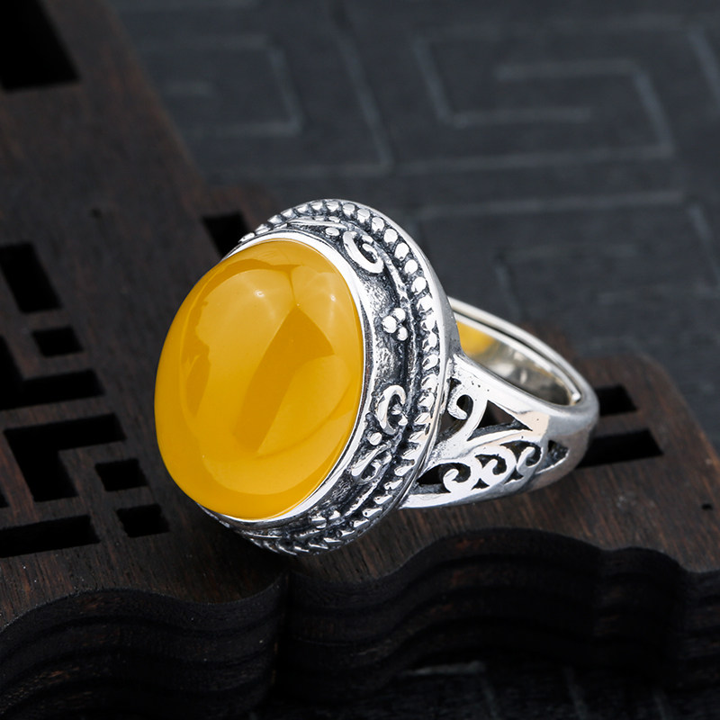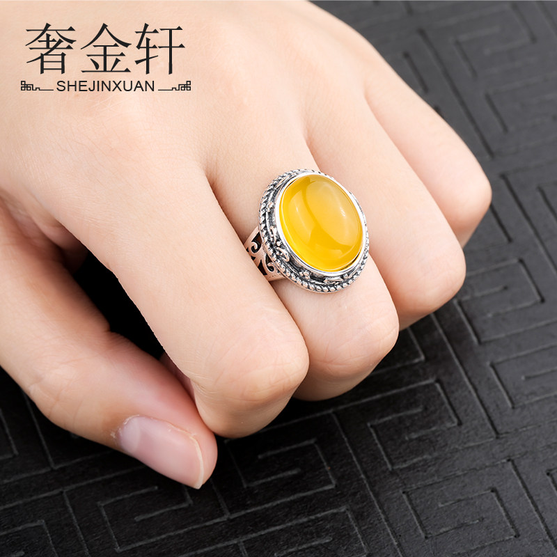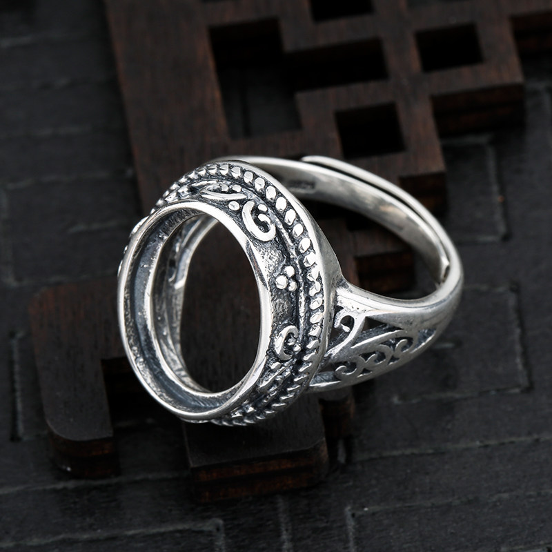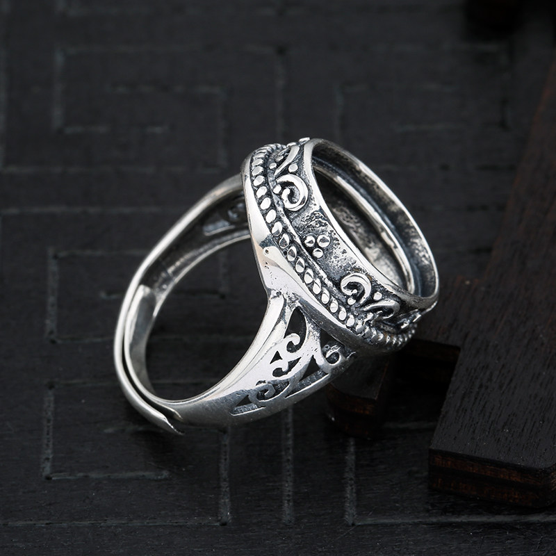 天猫奢金轩旗舰店,925纯银戒指空托复古做旧原创蜜蜡,925纯银 复古泰银戒指空托