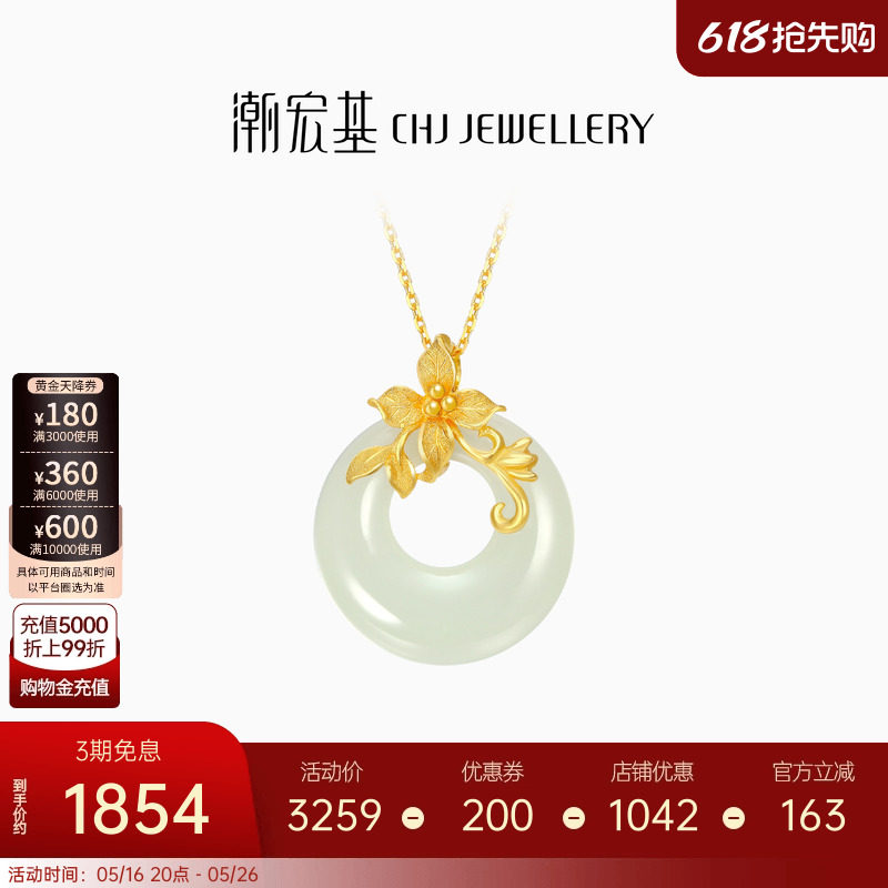 天猫潮宏基珠宝旗舰店,潮宏基花枝玉翠和田玉金镶玉黄金,金玉相伴 气质点缀