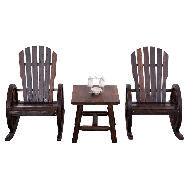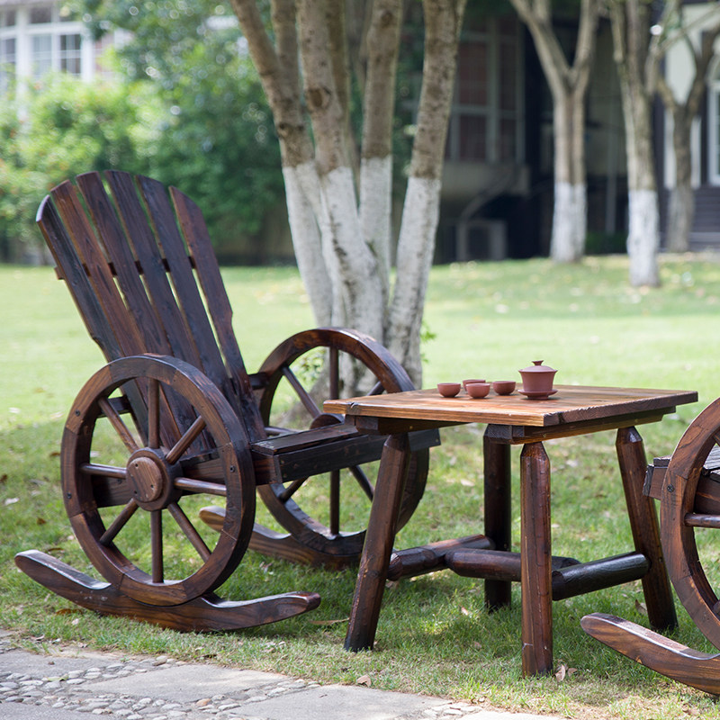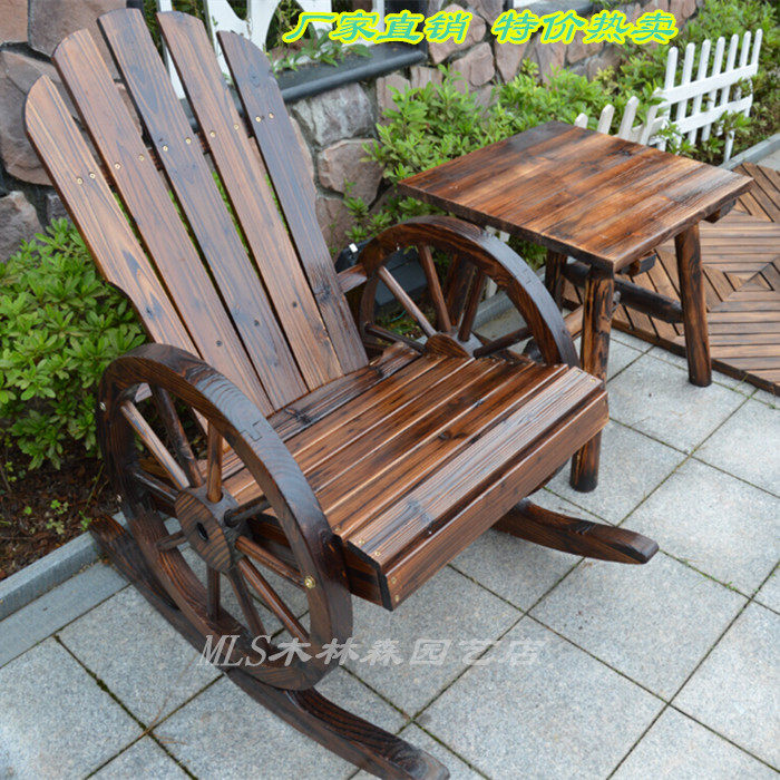 淘宝户外园林园艺,纯实木摇椅方桌碳化车轮桌椅茶几