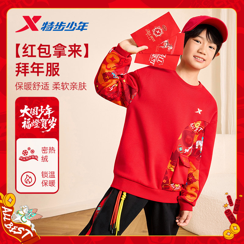 天猫特步童装旗舰店,福燈贺岁|特步童装男童春装新年加绒套装马年儿童卫衣长裤拜年服