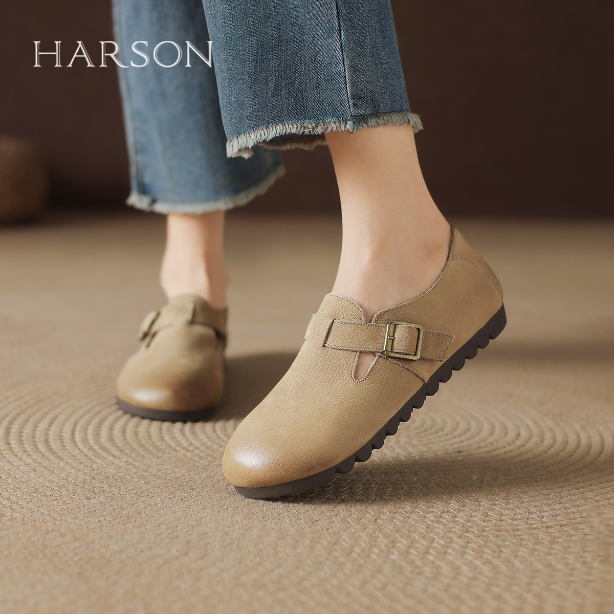 天猫哈森官方旗舰店,哈森复古勃肯鞋一脚蹬平底鞋