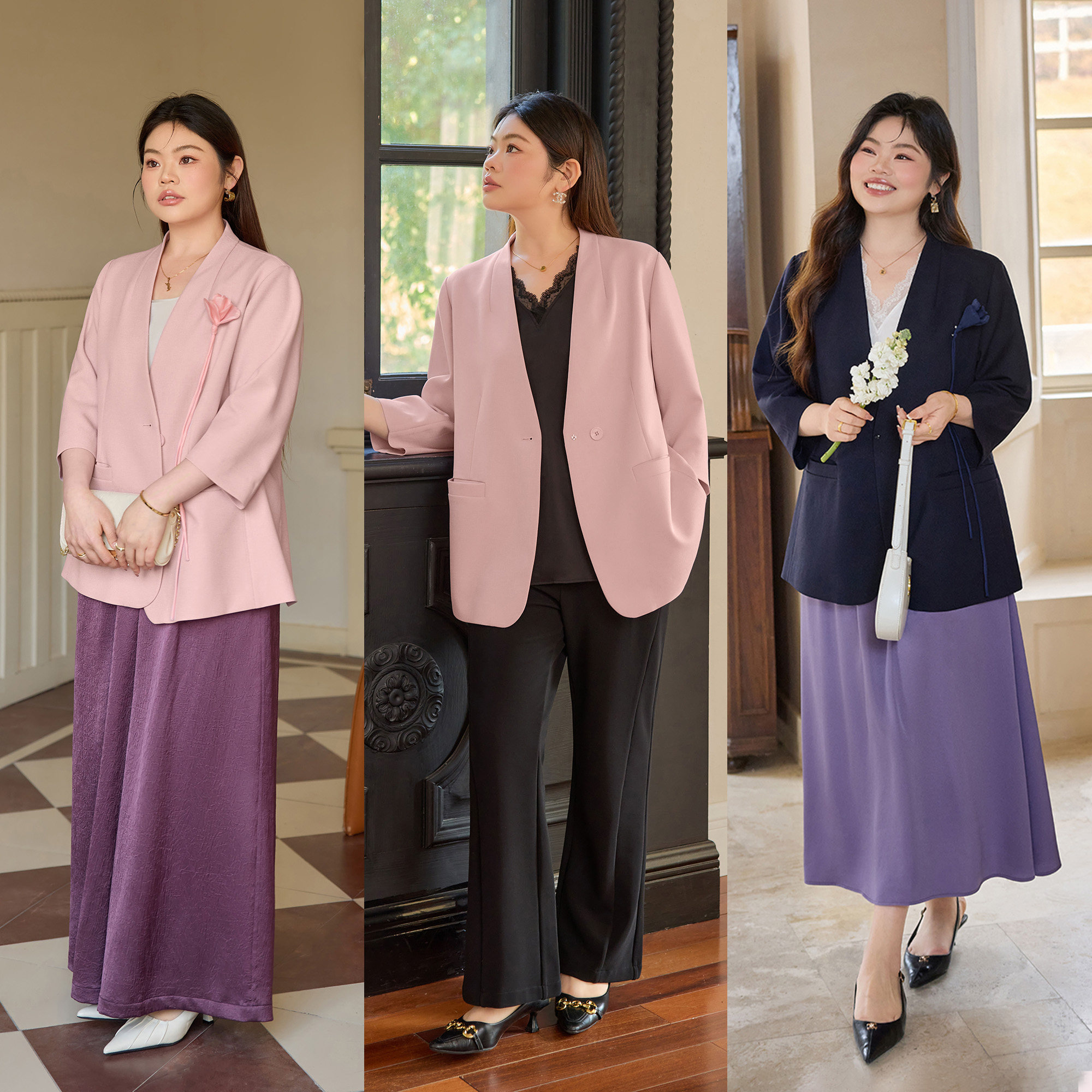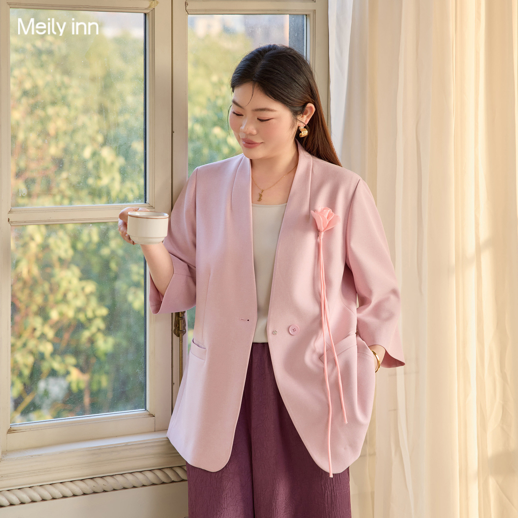 天猫美丽客栈服饰旗舰店,美丽客栈大码雾纱凝香西装外套