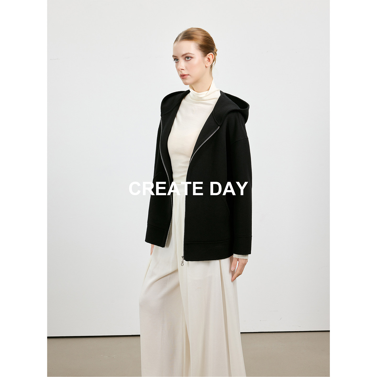淘宝CREATE DAY 品质生活,100%山羊绒连帽外套女