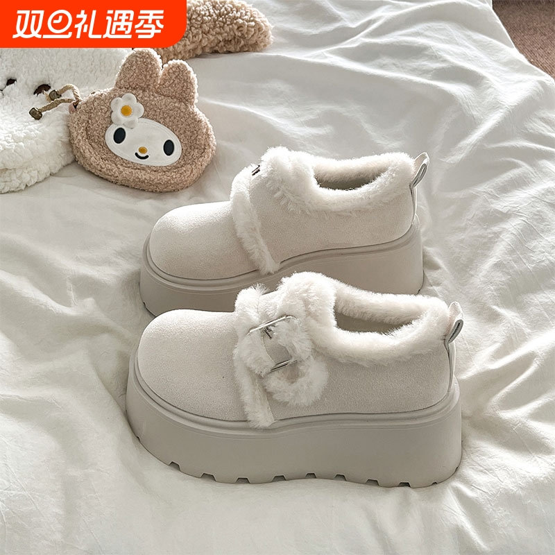 天猫淘工厂美妆直营,白色松糕厚底加绒保暖勃肯鞋女2025秋冬季新款增高雪地靴毛毛棉鞋
