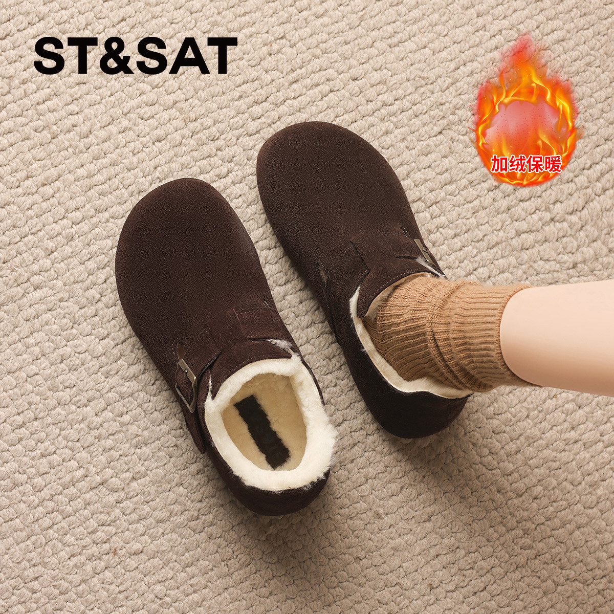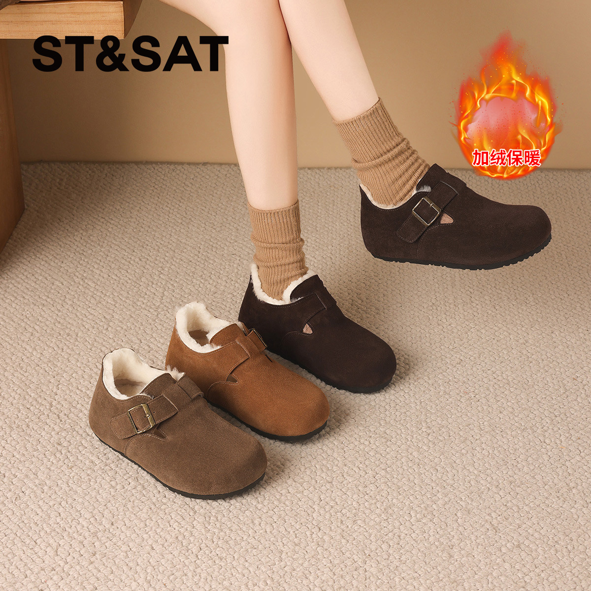 天猫星期六官方旗舰店,星期六真皮加绒勃肯鞋女冬季新款