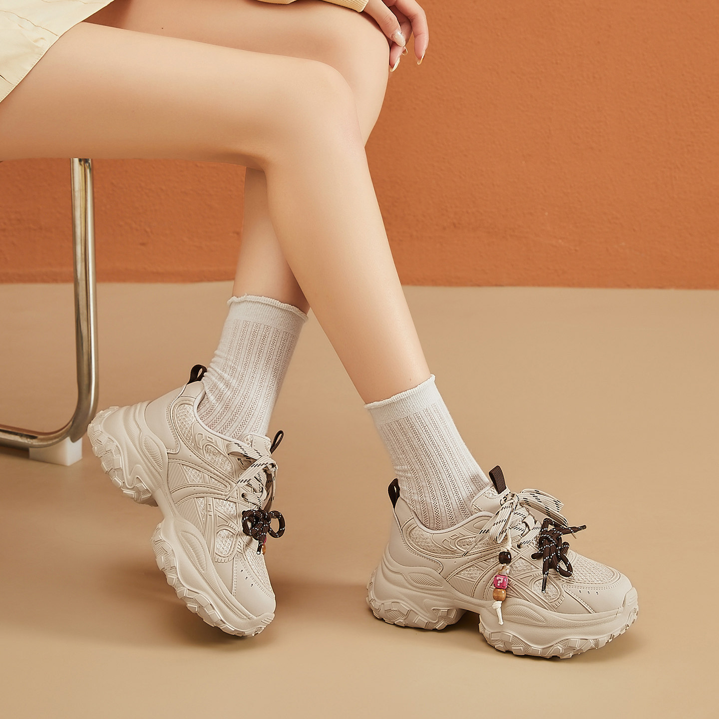 天猫1688官方工厂,女鞋2025春季新款百搭潮牌厚底增高6CM舒适老爹鞋网红休闲运动鞋