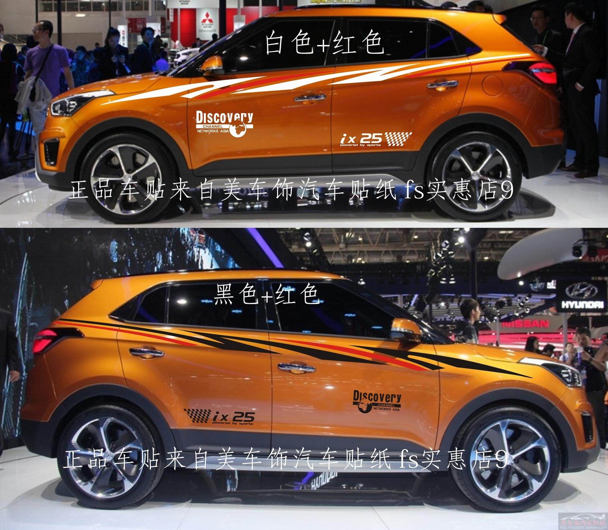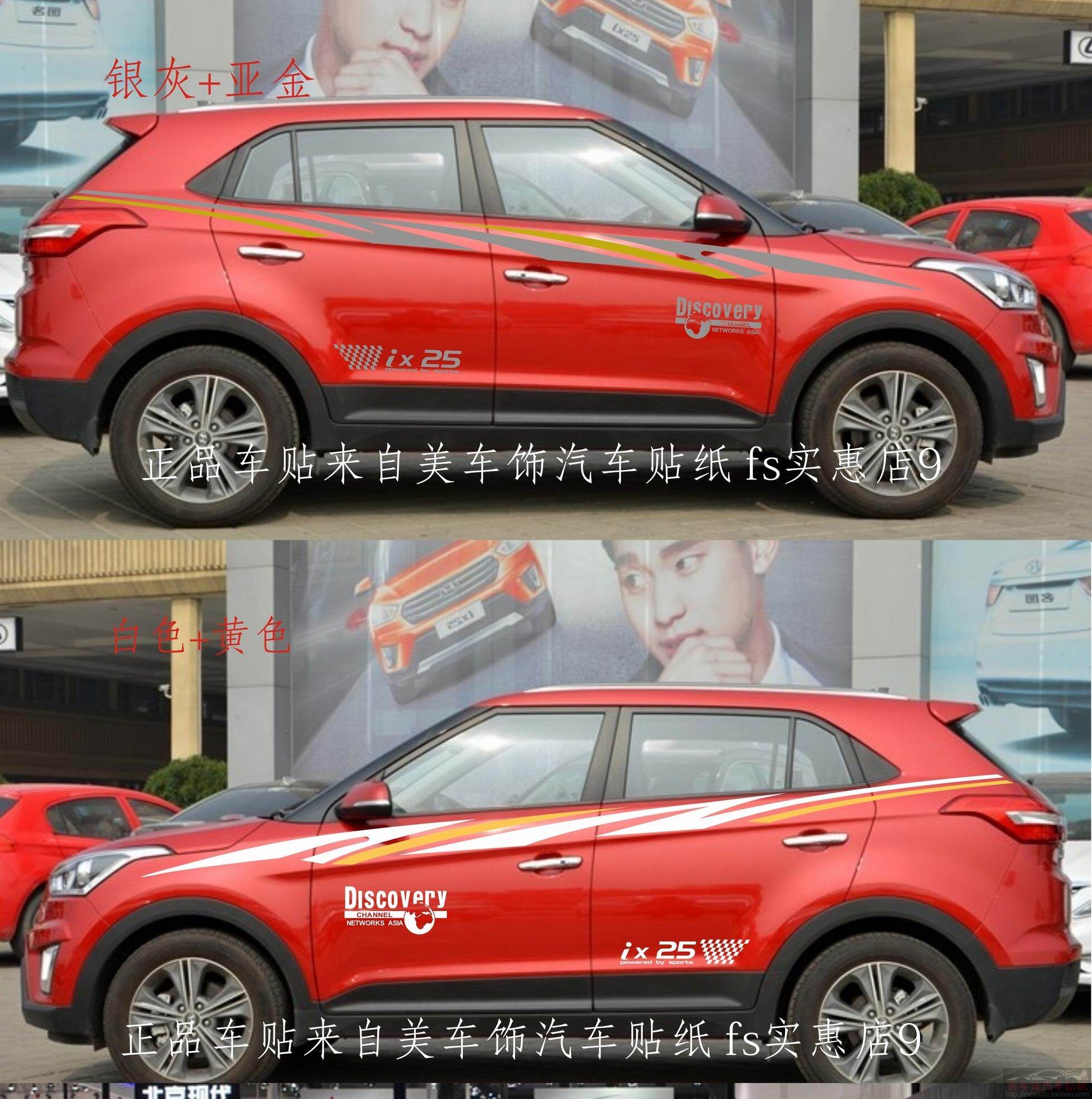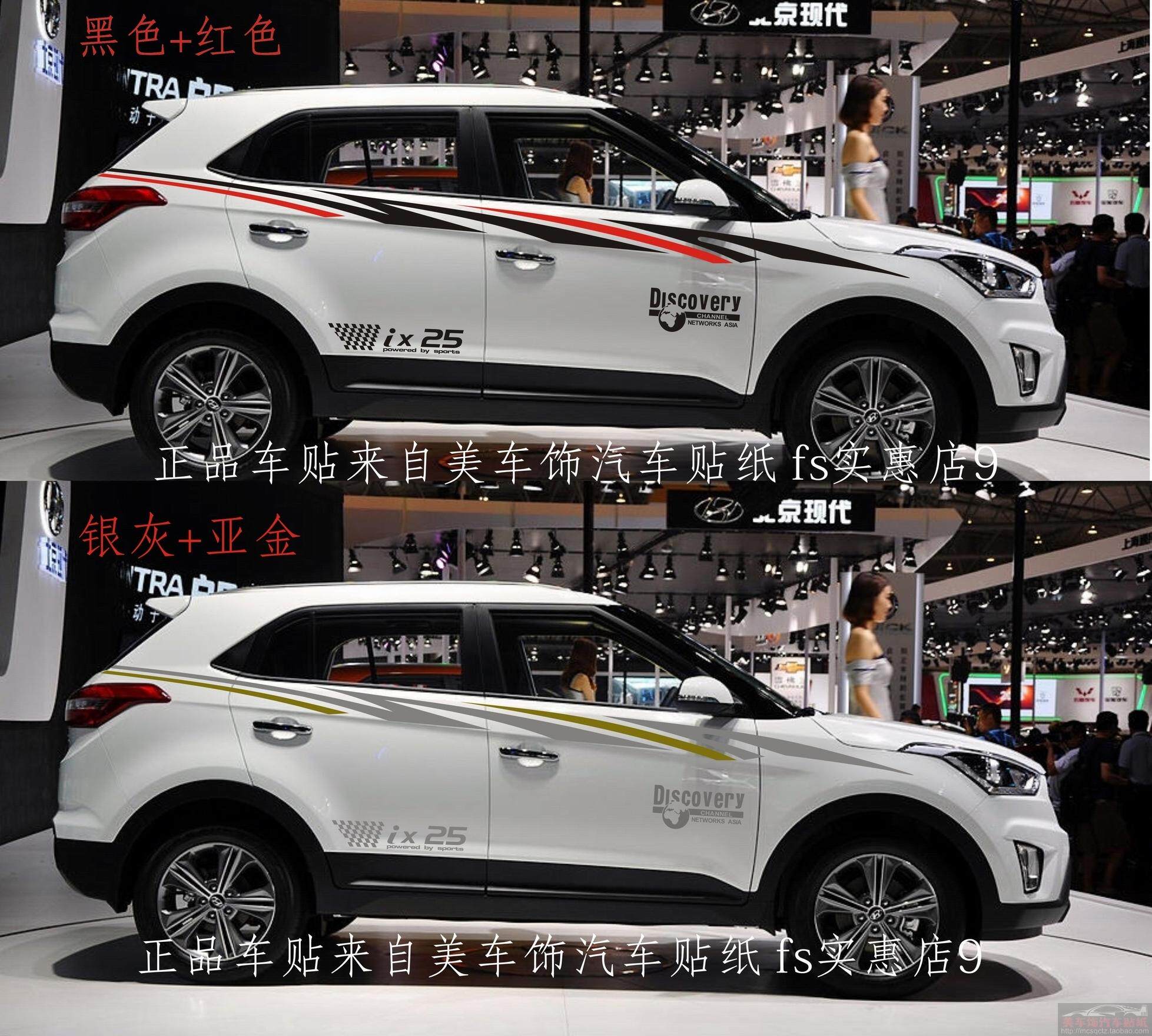 淘宝美车饰专业汽车拉花贴纸,北京现代ix25车身贴改装彩贴拉花