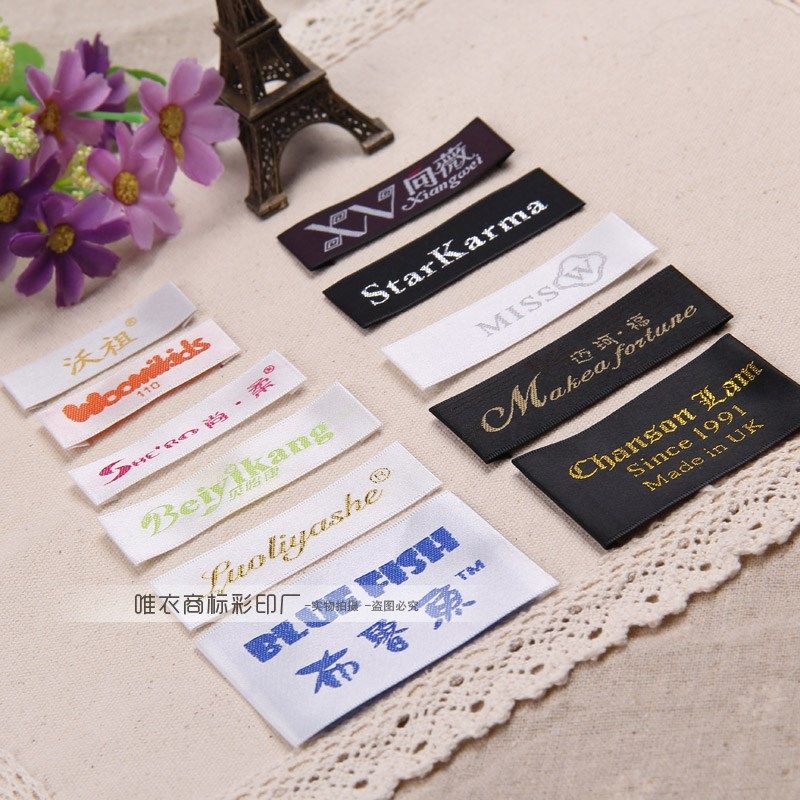 淘宝唯衣商标彩印厂,高档木梭机领标订做定做服装商标