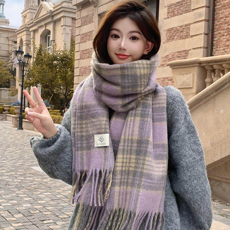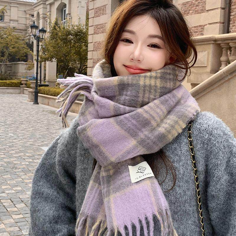 淘宝4766147213770376835,香芋紫围巾高级感冬季保暖