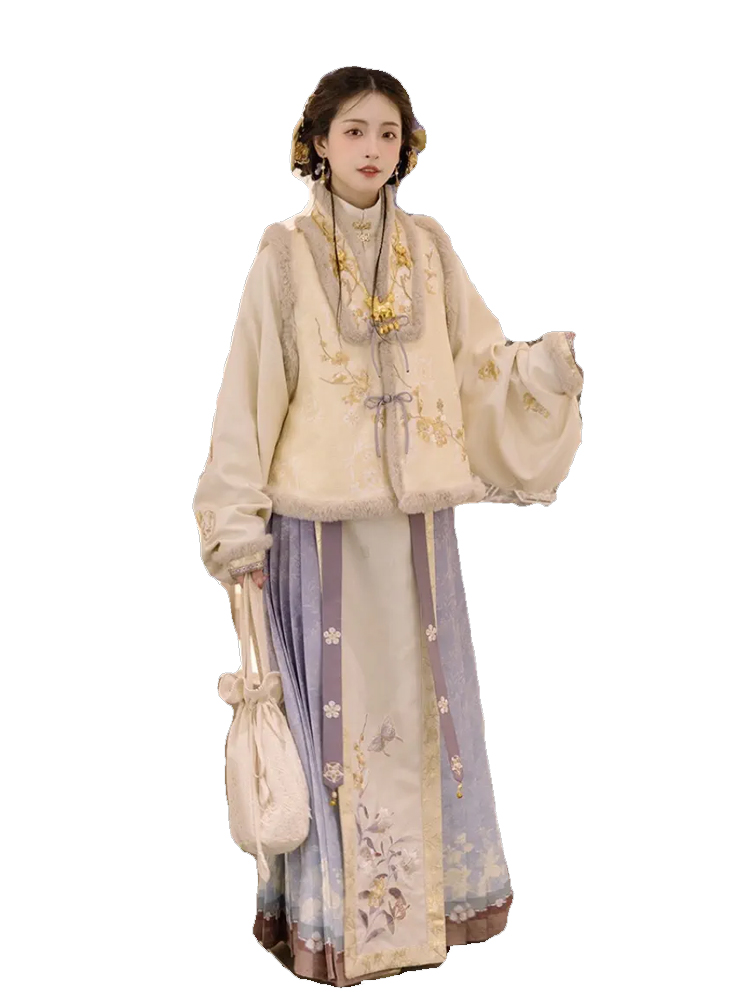 汉服明制马面裙秋冬季套装【紫攸烟】保暖短袄比甲立领刺绣原创女