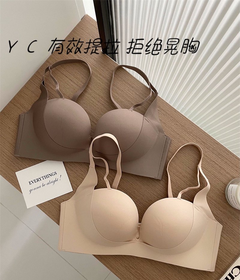 淘宝YC内衣小店,YC漫画圆胸无痕内衣女小胸聚拢变大无钢圈收副乳防下垂文胸薄款夏