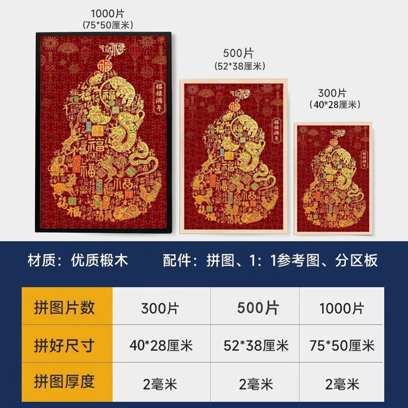 淘宝舒雅日用品销售店,福禄寿拼图1000片带相框满年成人版高级感2026新年葫芦玄关挂画