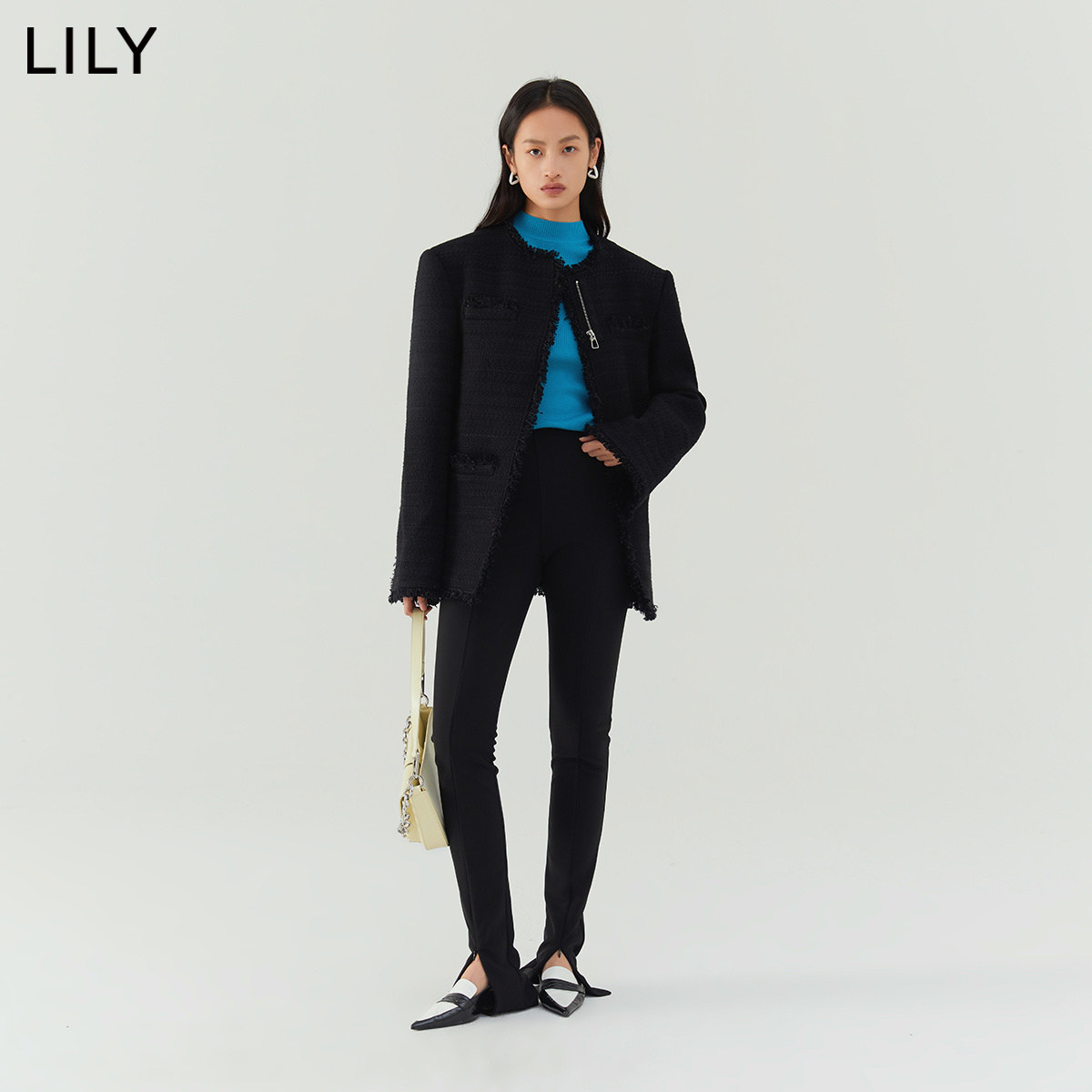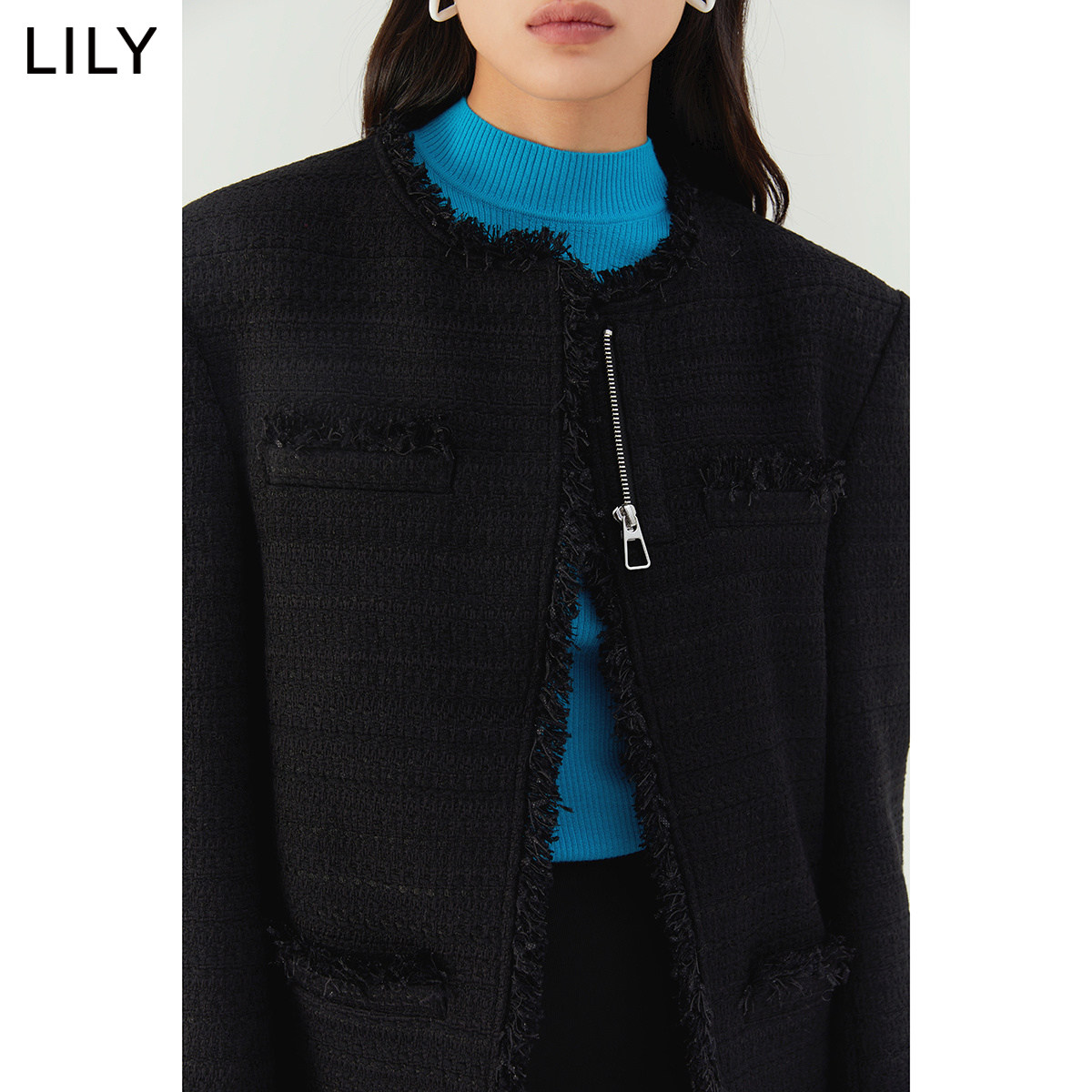 天猫LILY官方旗舰店,【商场同款】lily2022冬新款女装复古,复古别致毛边, 设计感双口袋
