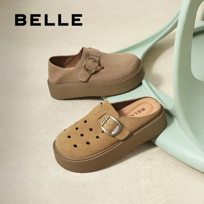 淘宝正品女鞋线上折扣店,百丽厚底牛皮全包勃肯鞋女鞋子