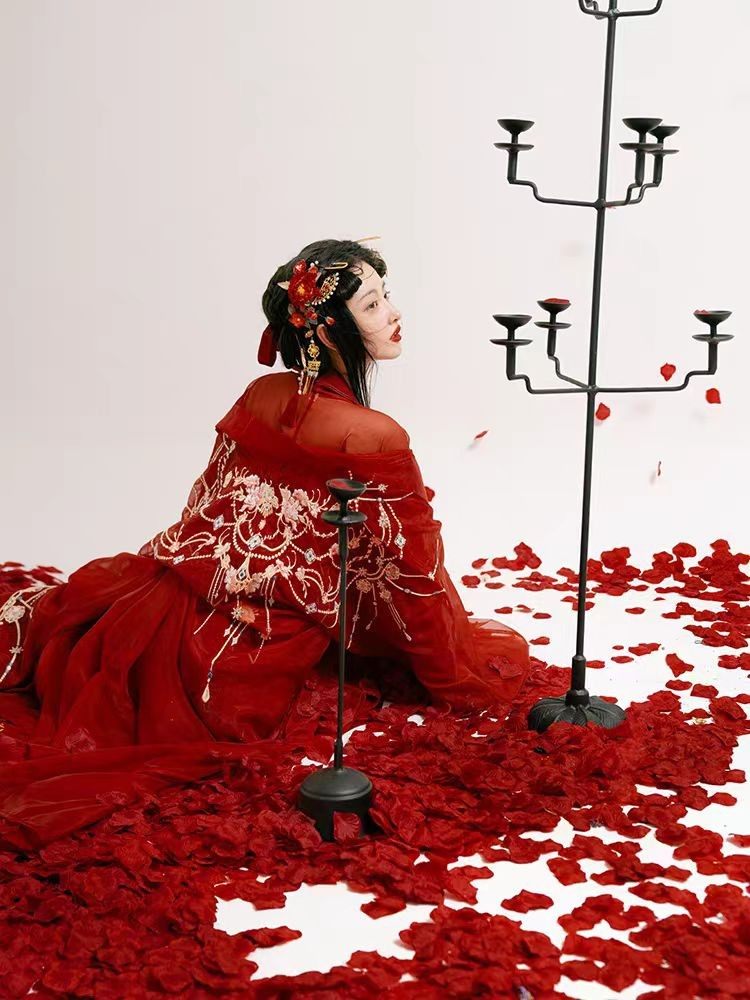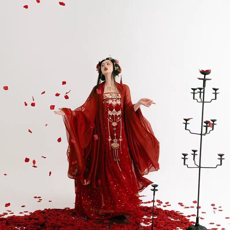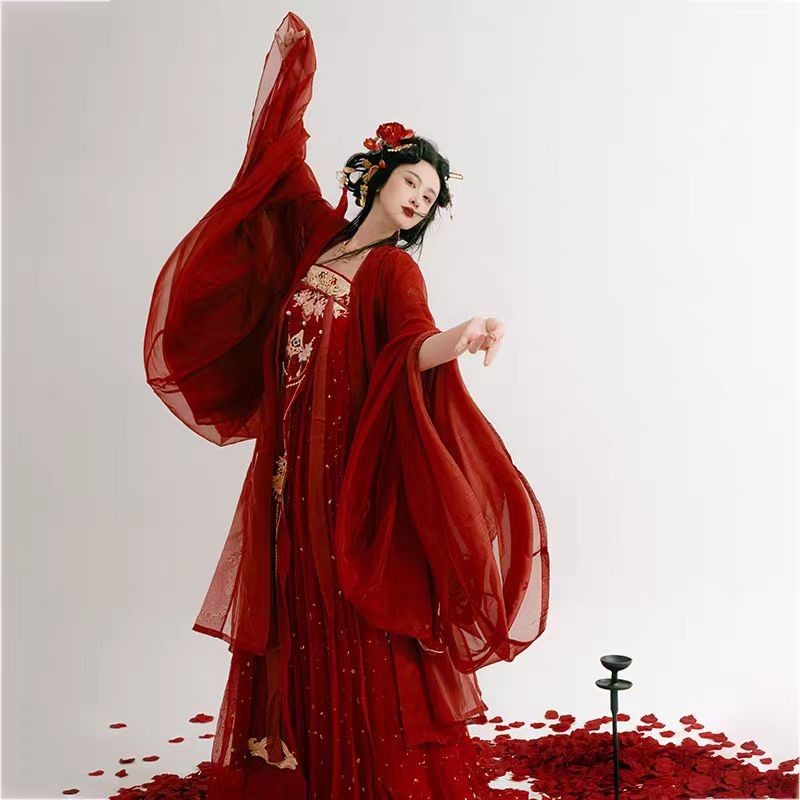 淘宝茶屿汉服,原创汉服女【红色】唐制重工刺绣一片式齐胸襦裙大袖衫套装春季款
